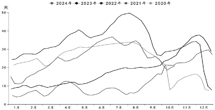 图为纺企棉纱库存 (单位:天) 宏观面同样值得关注,11月初,美国大选结果及国内财政政策的实施力度等将进一步明朗。十四届全国人大常委会第十二次会议将于11月4日至8日在北京举行。从目前国内商品市场走势来看,部分板块已经开始走强,棉花表现相对克制,继续关注后续的宏观政策表现。 目前国内棉花基本面仍偏弱势,供给相对充足,需求表现一般,但由于新棉成本基本确定,短期供给无太大抛压,下方的支撑较强。后续的宏观政策、需求表现等,是中期行情的关键。(作者单位:国投期货) (责任编辑:迷你学人) |