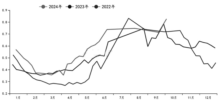 美糖在9月大幅反弹,主连合约最大涨幅达到34.9%,价格逼近年初高点。这波反弹的主要推动因素是巴西减产,8月底巴西甘蔗主产区发生火灾,由于火势较大,市场对2024/2025榨季巴西的甘蔗和食糖产量产生担忧。9月,巴西中南部的甘蔗压榨量也确实明显下降,减产预期使得美糖持续上涨。不过,随着巴西生产逐渐进入尾声,减产的利多已经大部分反映在了价格当中,美糖上涨的动力有所减弱,盘面再次进入震荡区间,市场等待新的题材出现。展望后市,美糖有两个值得关注的因素:一是四季度至明年一季度巴西中南部地区的降雨情况,如果干旱持续到明年一季度,会对2025/2026榨季巴西的甘蔗单产产生较大影响,明年巴西甘蔗和食糖产量可能进一步下降;二是2024/2025榨季印度、泰国的食糖产量。印度的甘蔗产量和乙醇政策存在较大的不确定性,关注后续生产情况和政策变化。