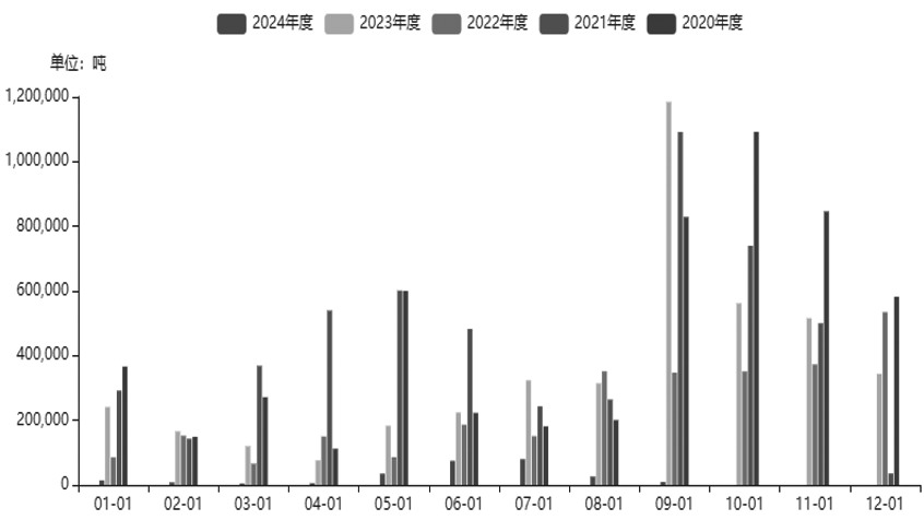 10月份,尿素盘面震荡回落,价格波动弹性逐步趋弱,多空因素交织影响下,主力2501合约走势较为纠结。 出口明显缩量 往年四季度是尿素出口旺季,近三年月度出口均量在40万~50万吨,这对农业需求淡季阶段消化国内库存起到重要的缓冲作用。今年在保供稳价政策引导下,尿素前三个季度出口量远低于历史同期,一定程度上加剧后续国内去库存压力。隆众数据显示,2024年9月尿素出口量约9263.93吨,同比下滑约99%,环比下降63.69%,净出口增速-63.67%。