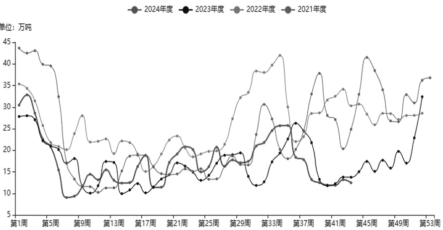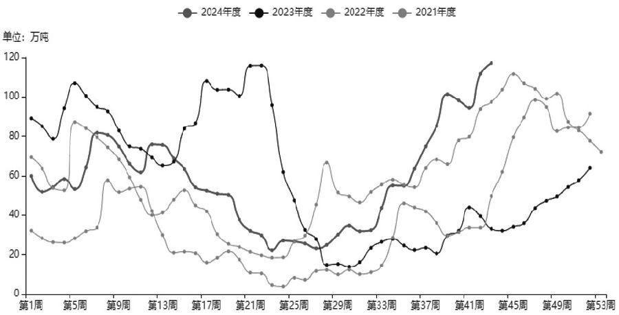 图为尿素检修量 除常规减量外,我们更多关注利润下降可能带来的损失量。从今年尿素各个工艺利润表现来看,产业利润缩水明显,尤其是下半年固定床工艺亏损持续扩大。隆众数据显示,截至10月25日,固定床工艺理论亏损约441元/吨,远低于历史同期,但现金流成本尚未持续大幅亏损。若后续利润继续收窄,不排除可能引发部分计划外检修,进而给予盘面部分支撑。 虽然后续供给端面临部分缩量预期,但我们还需关注新增产能释放对市场情绪的冲击。目前兖矿鲁南、晋开延化、陕西龙华等产能已陆续释放,后续江苏恒盛、甘肃刘化等多套装置计划投产,新增产能压力犹存。根据氮肥协会数据测算,在氮肥生产外部要素保障到位的情形下,今年四季度到明年一季度国内尿素产量约3415万吨,同比增加约137万吨。基于此,我们预估后续尿素供给端整体或较为宽松,装置检修预期可能仅部分缓解阶段性压力,尿素价格反弹空间或受限。 产业去库存压力犹存 近两年尿素产能持续释放使今年高日产、高负荷成为常态,但下游需求端增量有限,加之出口受限导致基本面宽松格局较难改善,产业累库压力凸显。隆众数据显示,截至10月下旬,国内尿素总库存约117.26万吨,远超往年同期。