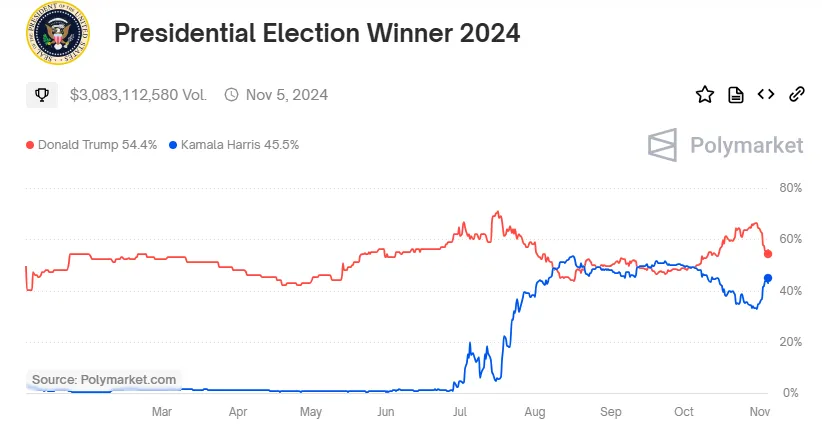 交易员继续削减对特朗普赢得美国总统大选前景的押注。 美国选情历史性胶着,哈里斯意外在红色州爱荷华州领先特朗普,市场“特朗普交易”继续走弱,美元、比特币双双回落。 美联储方面,据CME“美联储观察”,美联储到11月降25个基点的概率为99.7%,维持当前利率不变的概率为0%,降息50个基点的概率为0.3%。 美元指数大跌,人民币暴涨 上周五大涨的美元指数今天(11月4日)突然大跌,在103.7点徘徊,相比上周五的高点104.34点出现明显的下滑。 与此同时,离岸人民币狂飙近600点,1美元兑人民币已经跌破7.09,目前在7.089附近。11月4日,人民币兑美元中间价报7.1203,下调68点。 分析人士认为,这可能与美国大选有着密切关系。此前一个月时间,特朗普交易盛行,与之相关的特朗普媒体科技公司、美元指数、虚拟货币全线大涨。然而,随着最新的民调和投票数据更新,哈里斯选情看涨,美国大选的不确定性大增,特朗普交易出现了一定程度的反转,此前上涨的资产基本都出现了大跌。 作为“特朗普交易”的最大风向标,社交媒体平台Truth Social母公司特朗普媒体科技集团股价近三个交易日累计暴跌超40%,市值蒸发逾40亿美元。周一盘前,特朗普媒体科技集团继续暴跌,截至发稿跌超7%。 时下最受瞩目的大选预测平台Polymarket的数据显示,特朗普赢得今年大选的概率最新已降至了54.5%,哈里斯的胜选概率则迅速回升至了45.5%。要知道,就在上周五,即便特朗普的胜率当时已有所回落,但依然高达63.2%。 ![]() 据央视新闻,当地时间11月3日,一项民意调查显示,在2024年美国大选7个关键“摇摆州”中,美国副总统、民主党总统候选人哈里斯总体以48%对47%的微弱优势领先美国前总统、共和党总统候选人特朗普。 ![]() 国际油价拉升 国际油价大涨。 截至今日18点,WTI原油和布伦特原油涨幅均超过2%,其中,WTI原油涨幅接近3%。 消息面上,当地时间11月3日,石油输出国组织(欧佩克)发表声明说,8个欧佩克和非欧佩克产油国决定将原定11月底到期的日均220万桶的自愿减产措施延长至12月底。 声明称,8个“OPEC+”成员国决定延长自愿减产措施,并重申了完全遵守自愿减产目标的决心,相关国家将在2025年9月之前完成补偿性减产义务。不过声明未提及8国是否将于明年1月开始回撤这部分减产力度。 据悉,上述8国最初于2023年11月宣布日均220万桶的自愿减产措施。由于需求疲软和美洲供应增加给油价带来压力,今年6月初,8国宣布将这部分自愿减产措施延长至9月底,并于9月初决定再次延长至11月底。 非农数据暴跌 市场静待美联储议息会议 美国此前公布的非农数据显示,美国10月非农就业人数增加1.2万人,预期增加11.3万人,前值由25.4万人修正为22.3万人。美国10月失业率为4.1%,预期为4.1%,前值为4.1%。 美国劳工统计局公告称,飓风“海伦妮”的登陆和影响是在住户调查(失业率)和企业调查(非农就业人数)的参考期间之前。飓风“米尔顿”则在调查参考期内。10月份的住户调查回复率在正常范围内。10月的企业调查收集率远低于平均水平。一些行业的就业人数估计很可能受到飓风的影响,然而,不可能量化飓风对非农就业人数、平均时薪等数据的影响。 另外,8月份非农就业总人数从15.9万人向下修正8.1万人,至7.8万人;9月份非农就业总人数从25.4万人向下修正3.1万人,至22.3万人。经过这些修正,8月和9月的就业人数加起来比之前报告的人数少了11.2万人。 美国总统拜登在回应10月份的就业数据时表示,飓风和罢工活动导致就业增长放缓。 他认为,就业增长预计将在11月份反弹,并补充道:“还有更多工作要做。” 据CME“美联储观察”:美联储到11月降25个基点的概率为99.7%,维持当前利率不变的概率为0%,降息50个基点的概率为0.3%。到12月维持当前利率不变的概率为0%,累计降息25个基点的概率为19.5%,累计降息50个基点的概率为80.3%。 非农公布前,美联储到11月降25个基点的概率为93.1%,维持当前利率不变的概率为6.9%。到12月维持当前利率不变的概率为5.2%,累计降息25个基点的概率为94.8%。 (文章来源:证券时报) (责任编辑:迷你学人) |