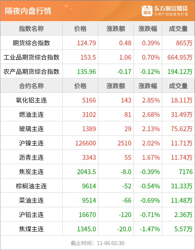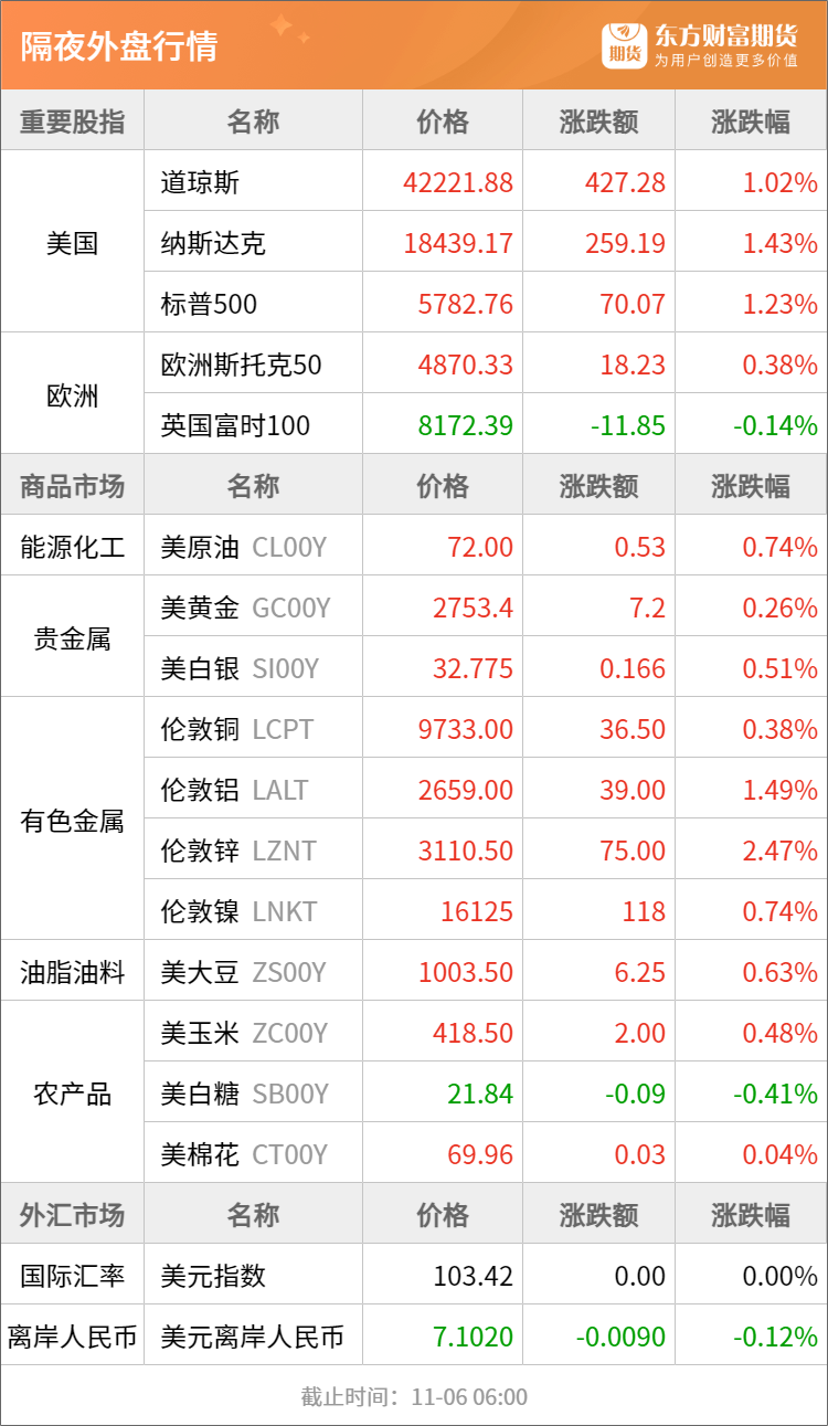 东方财富期货早餐 11月6日 周三