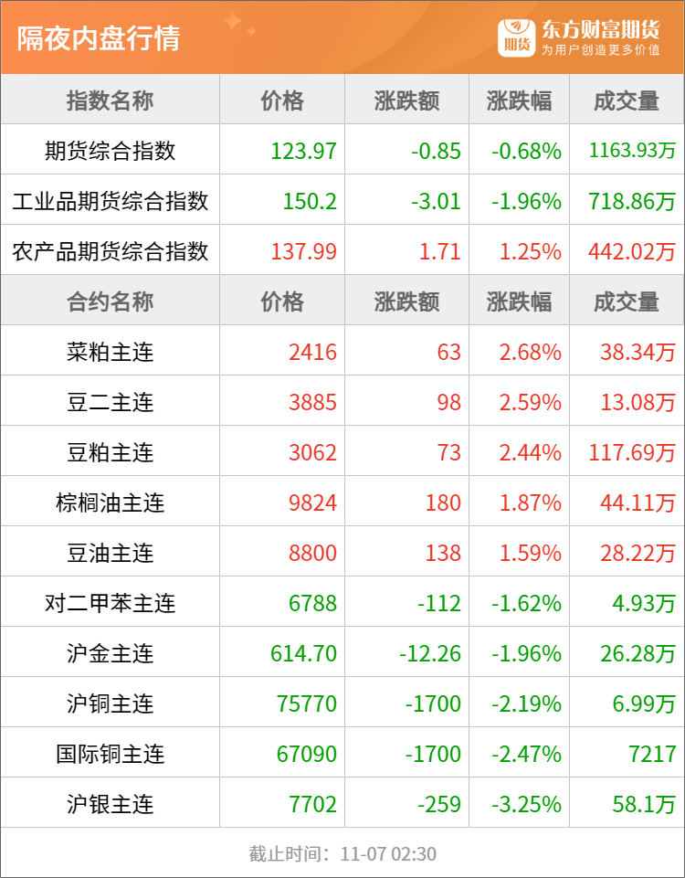 东方财富期货早餐 11月7日 周四