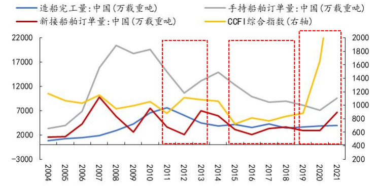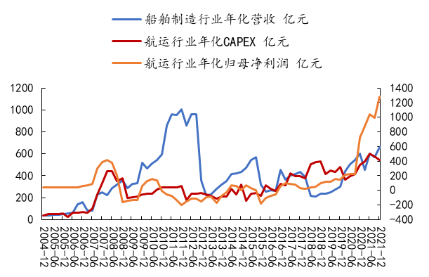 图1:中国集装箱船在2020年初率先开始景气 ![]() 数据来源:Wind、开源证券研究所 图2:2021年油价的上涨很大程度上推升了海运费用 ![]() 数据来源:Wind、开源证券研究所 图3:2021年我国造船行业景气度进一步上升 ![]() 数据来源:Wind、开源证券研究所 图4:2021年我国船舶出口景气度也大幅上升 ![]() 数据来源:Wind、开源证券研究所 图5:新造船价格从2020年开始快速攀升 ![]() 数据来源:Wind、开源证券研究所 图6:新造船价格环比连续15个月为正 ![]() 数据来源:Wind、开源证券研究所 图7:海运价格上涨通常领先造船周期开启1年左右时间 ![]() 数据来源:Wind、开源证券研究所 图8:上一轮船舶交付高峰集中在2003-2011年 ![]() 数据来源:Wind、开源证券研究所 图9:造船产能长时间趋势下行,在2020年才触底回升 ![]() 数据来源:Wind、开源证券研究所 2、船舶微观财务分析:2023年有望受益于量价齐升,盈利弹性凸显 回溯上一轮船舶上行周期,航运与船舶财务数据具备以下关联: (1)航运盈利与CAPEX正相关性高达0.9,两者与船舶手持订单及新船价格周期基本同步,即上一轮周期均在2008年附近达到“峰值”。其背后逻辑是:航运赚钱效应回暖,航运企业扩张意愿增强(CAPEX)将带动船舶新增订单回升,同时,基于供需偏紧的逻辑,新船价格亦趋于上涨。 (2)船舶营收与造船完工量的周期均滞后于航运资本扩张周期约3~4年,即上一轮周期“峰值”则延后至2011年。基于前文的分析结论,船舶新增订单到交付周期约3~4年,导致造船完工及其对应的营收周期相对滞后。 船舶偏中期逻辑:至少2023年营收扩张依然是大概率事件。2019年航运需求开始回暖,截至2021年年底A股航运行业的归母净利润高达993亿元人民币,相比2019年低点上涨近10倍;2020~2021年期间航运CAPEX扩张明显,亦由约350亿元升至接近600亿元规模。这意味着,即便不算前文所述的更新替代与环保逻辑,仅考虑3~4年的滞后性传导,造船完工量亦有望在2023年开始明显回升,对应船舶营收明显释放。 预计2023年船舶有望受益于“量价齐升”,盈利弹性或较为凸显。基于船舶交付即为航运资产的假设,分别采用2004年中国造船完工量880万载重吨、单船载重量约6万吨、VLCC新船造价1.05亿美元、美元兑人民币汇率8.27及2004~2011年航运现金净流入(剔除折旧),测算2004~2011年船舶上行周期期间的IRR为47%。同时,基于船舶上行周期期间IRR不变、2021年中国造船完工量3970万载重吨、单船载重量约8万吨、VLCC新船造价1.09亿美元、美元兑人民币汇率6.7及2021年航运现金净流入(剔除折旧)1890亿元(假设未来保持不变),预估2023年船舶交付总额为1.25万亿元,即便新船价格重回2008年约1.6亿美元高点,对应造船完工量依然有约9,300万载重吨,2年CAGR高达53%。 图10:船价上涨与手持订单均领先于造船完工量 ![]() 数据来源:Wind、开源证券研究所 图11:船运盈利及资本开支周期领先于船舶营收周期约3~4年 ![]() 数据来源:Wind、开源证券研究所 3、船舶新一轮上涨周期或开启在即,市场表现弹性或延续至2023年 我们展望船舶行业投资机会如下: (1)最快2022Q3船舶表现或将开启新一轮上涨周期。主要基于:(1)2021年新接船舶订单显著增长,考虑其领先于船舶市场表现约9~18个月;(2)2022年2月VLCC新船价格开启新一轮上涨,考虑其领先于船舶市场表现约8个月,均显示最快2022年9月船舶行业新一轮上涨周期或有望开启。 (2)2023年船舶行业有望受益于“量价齐升”,享受较高的市场表现弹性。参考上一轮船舶上行周期,A股船舶行业市场表现弹性与手持订单及新船价格明显相关,2006~2007年涨幅分别高达260%/575%。这意味着,基于前文的分析结论,截至2023年供需偏紧的环境下,量价齐升或是大概率事件,届时,船舶行业将有望享受较高的市场表现弹性。 (3)船舶行业机会或贯穿未来十年,享受期间每一轮全球经济复苏。2007年新船价格达到高点、2008年手持订单达到高点,然而,船舶行业表现一直持续至2010年,接近2011年的造船完工(交付)峰值。这意味着,倘若新一轮船舶上行周期或持续至2036年,那么,以更长期的视野看待船舶行业机会,将有望贯穿未来十年周期,且期间每次驱动或均伴随着全球经济的复苏周期。 图12:船价领先于船舶制造业市场表现约8个月 ![]() 数据来源:Wind、开源证券研究所 图13:新接船舶订单领先于市场表现约9-18个月 ![]() 数据来源:Wind、开源证券研究所 (文章来源:开源证券) (责任编辑:admin) |
