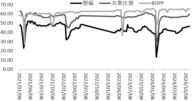 目前来看,聚丙烯市场供需矛盾有限,供应端开工略低于去年同期,库存下降,下游以刚需为主。在这种情况下,聚丙烯延续低位震荡走势,等待基本面进一步变化,并给出方向性指引。 行业经营改善 目前,国内聚丙烯生产企业各工艺均处于亏损状态,但是主流工艺油制、煤制和MTO亏损较往年明显缩窄,整体上聚丙烯企业经营状况尚可。截至目前,国内油制、煤制、MTO、外采丙烯、PDH工艺分别亏损420元/吨、260元/吨、560元/吨、170元/吨、890元/吨,去年同期各工艺制PP则分别亏损1130元/吨、565元/吨、890元/吨、315元/吨、1620元/吨。不过,虽然企业经营状况好于去年,单聚丙烯开工负荷则出现下降。近期,扬子石化的20万吨装置和大庆炼化的30万吨装置停车半个月左右,计划在本月中下旬重启。受此影响,国内聚丙烯开工负荷环比下降0.11个百分点,较去年同期下降2.36个百分点。不过,由于产能基数上升,目前国内聚丙烯周产量达到 63.9万吨,较去年同期上升3万吨,同比上升4.69%。虽然聚丙烯开工负荷低于去年同期,但是产能上升,实际供应略高于去年同期。整体上,聚丙烯生产经营状况尚可,开工稳定的概率较大。 10月以来,下游向好,国内聚丙烯去库存加快。截至11月6日,国内聚丙烯商业库存为 71.81万吨,环比上升1.42%;较去年同期下降4.48万吨,同比下降5.87%。进出口方面,由于外盘套利窗口没有开启,因此聚丙烯出口量有限,其对聚丙烯供需影响不大。 下游稳中向好 国内聚丙烯下游消费呈稳中向好态势。截至11月7日,国内塑编、共聚注塑、BOPP开工负荷分别为46.8%、60%、65.25%,较去年同期分别上升0.94个百分点、下降1.3个百分点、上升0.47个百分点。塑编方面,电商节已经结束,但是目前塑编终端囤货热情依旧良好。年底很多重点工程面临收尾,水泥袋订单增加。北方地区开始施用底肥,化肥袋需求也相对良好。整体来看,塑编需求稳定,订单有所增加,开工较往年小幅提升,整体需求尚可。BOPP方面,膜厂订单基本稳定,下游处于传统旺季,需求跟进情况尚可。 整体来看,聚丙烯下游需求表现稳中向好,但是没有明显的增长点,对聚丙烯价格能起到一定的支撑作用,但是很难为聚丙烯提供持续上涨动能。 综上所述,目前聚丙烯供需面并无明显矛盾。供应方面,虽然开工负荷低于去年,但是由于产能上升,实际周产量大于去年。10月受电商节影响,聚丙烯下游需求良好,去库存加快。需求端塑编、BOPP均表现出较强的刚需采购,但是需求未现明显增量。在这种情况下,聚丙烯价格以震荡运行为主,等待基本面变化给出进一步指引。(作者单位:中原期货) (责任编辑:迷你学人) |