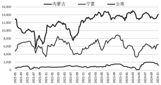 10月中旬,锰硅震荡走高,低位有所回升,但近期随着乐观情绪的消退,锰硅再度转弱下行,主力合约快速回落并回吐前期大部分涨幅。现货价格同样下行,主流地区录得30~150元/吨不等跌幅。 主产区生产积极 锰硅南北方供应呈分化态势。北方锰硅产量维持高位,而南方复产动力不足,产量有所下降。截至11月8日当周,钢联统计的全国锰硅日均产量为27090吨,环比仅微降110吨,降幅有限。具体来看,内蒙古地区个别炉子检修完成,锰硅产量持续增加至年内高位,预计后市产量仍有上升空间;西北地区开工率和产量相对稳定,宁夏锰硅企业开工率和日均产量最新值分别为66.96%、6540吨,同样处于年内高位。而南方地区锰硅企业亏损严重,生产相对受限,锰硅供应有所减量。云南、广西锰硅日均产量最新值分别为1150吨、790吨,环比分别下降400吨、80吨,其中由于云南地区进入枯水期,产量下降相对明显。 得益于北方主产区生产积极,锰硅供应近期虽有收缩,但整体降幅不大。且北方地区成本优势明显,锰硅企业生产积极,继而支撑锰硅供应维持相对高位。此外,自2023年9月内蒙古产区放开锰硅产能以来,厂家生产情绪持续高涨。据钢联不完全统计,2023年9月至今,内蒙古地区新增产能已投产项目年产能约34万吨,而在建设项目若全部投产,2025年一季度投产年产能约36万吨,二季度投产年产能约29万吨,下半年投产年产能约20万吨,未来锰硅产能仍有增量空间。 需求季节性走弱 近期钢厂生产积极性趋弱。截至11月8日当周,钢联调研的247家钢厂高炉开工率与炼铁产能利用率分别为82.29%、87.87%,环比分别下降0.15%、0.53%,而钢厂盈利率大幅收缩,最新值为59.74%,连续3周回落,累计降幅为14.72%。受此影响,钢联统计的五大材周产量最新值为861.49万吨,连续两周下降。而且钢厂生产结构调整,部分钢厂转产板材,锰硅需求减量更加明显。五大材周产量折锰硅周度需求量为12.52万吨,连续两周回落,累计降幅为3.44%。此外,虽然国内宏观利好政策频出,提振市场情绪,但政策利好传递到实体端并带来需求改善存有较长时滞,加上淡季钢市难以承接钢厂持续提产,钢材原料需求仍承压。 锰硅需求走弱局面下,锰硅库存再度累积。钢联统计的全国63家独立锰硅企业库存量为22.30万吨,环比增加9.31%,已升至年内高位,并高于去年同期水平。相应地,锰硅仓单在10月第15个交易日注销后,近期也在快速回升,最新值为23.97万吨,已处于同期高位。考虑到部分老仓单转为隐性库存,整体库存去化压力偏大,这将抑制锰硅价格走势。
