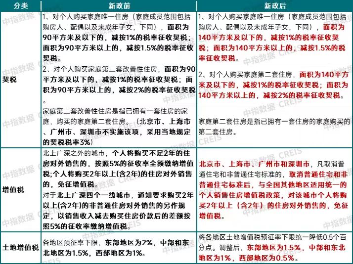以下为澎湃新闻根据新政整理的政策要点: 变化一:全国范围内,购买家庭唯一及第二套住房,不超过140平方米的按1%缴纳契税 新政:契税方面,将现行享受1%低税率优惠的面积标准由90平方米提高到140平方米,并明确北京、上海、广州、深圳4个城市可以与其他地区统一适用家庭第二套住房契税优惠政策,调整后,在全国范围内,对个人购买家庭唯一住房和家庭第二套住房,只要面积不超过140平方米的,统一按1%的税率缴纳契税。 ![]() 58安居客研究院院长张波指出,新政前,对于首套普通住宅契税大致在1%-1.5%,非普通住宅则是3%,目前统一为140平方米及以下的按1%税率征收,对于一二线城市来说,包括首套和改善,大量的需求都是集中在140平方米以下,契税的大幅优惠可以大大节省其买房支出,并且契税不同于房贷,需要在购房时一次性缴付,减少契税支出让购房者的当下感受更为直接和明显。 上海易居房地产研究院副院长严跃进指出,以上海为例,过去只有购买90平方米及以下的普通住房,契税按1%征收。而现在购买140平方米以下的房子,无论是首套房还是二套住房,都可以按1%征收。对于购房者来说,其税率可从原来最高的3%下调到1%。以500万元的住房为例,契税从原来的15万元减少到5万元。 变化二:购买140平方米以上住房,唯一住房减按1.5%、二套按2%税率执行 新政:对个人购买家庭唯一住房(家庭成员范围包括购房人、配偶以及未成年子女),面积为140平方米以上的,减按1.5%的税率征收契税。对个人购买家庭第二套住房,面积为140平方米以上的,减按2%的税率征收契税。 严跃进指出,140平方米以上的住房,可以通俗地约定为“豪宅项目”。对于一线城市来说,过去一般会列为非普通住宅,无论是首套还是二套,其税率均为3%。如此对比,新政下,若是按首套房的名义认购,其税率将从3%下降至1.5%,即1000万元的房子,契税从30万元减少到15万元。若是按二套房的名义认购,税率将从3%下降至2%,契税从30万元减少到20万元。其他城市在这个税率方面则没有变化。换句话说,大城市在买“豪宅”项目方面,和中小城市买顶豪的税率是看齐了。 变化三:购买2年以上(含2年)的住房对外销售的,免征增值税 新政:北京市、上海市、广州市和深圳市,凡取消普通住宅和非普通住宅标准的,取消普通住宅和非普通住宅标准后,与全国其他地区适用统一的个人销售住房增值税政策,对该城市个人将购买2年以上(含2年)的住房对外销售的,免征增值税。 ![]() 张波提到,降低交易税费,利好换房人群这一点和此前市场预期相同。从卖方来看,新政前,普宅满2年免征增值税,非普宅满2年按差额5%征收,新政后,2年以上非普宅也免征,虽然一线城市需要等普宅政策发布后才调整,但大概率也将保持同一节奏,超过2年免税将更有利于改善人群入市,尤其是对原来非普宅更为利好。叠加目前交易过程中,个人所得税减免的相关规定,换房的税费成本将大大降低,甚至除了二手房交易的经纪人佣金,大量住房都可以实现交易税费不断接近“零成本”。 中指研究院政策研究总监陈文静指出,以北京为例,政策优化前,满两年非普宅需缴纳增值税,若现价500万元,购买时原值200万元,则应缴增值税为(500-200)/1.05*5%,即14.3万元。政策优化后满两年原非普宅也可免征增值税,原应缴增值税可全部节省。 变化四:土地增值税预征率下限统一降低0.5个百分点 新政:土地增值税方面,将各地区土地增值税预征率下限统一降低0.5个百分点。 与我国房地产开发模式相适应,土地增值税实行预征制度。为充分发挥土地增值税预征的调节作用,税务总局于2010年发文明确了各地区预征率下限,其中:东部地区为2%,中部和东北地区为1.5%,西部地区为1%。 此次调整,将各地区土地增值税预征率下限统一降低0.5个百分点。调整后,东部地区为1.5%,中部和东北地区为1%,西部地区为0.5%。 张波提到,土地增值税层面目前下调的空间并不大,目前来看主要体现在预征层面的减少,这对于减少房企现金流压力层面将起到一定作用。 陈文静指出,近些年,随着房地产市场的持续调整,不少房地产项目的土地增值税实际税率已经明显降低,企业不少税费资金处于多缴状态,这部分资金如果不能及时退税,将增加企业的资金压力。本次将各地区土地增值税预征率下限统一降低0.5个百分点,有利于降低企业预征预缴的土地增值税,降低企业资金压力,对于当前稳定企业预期也将带来积极影响。 相关报道住房交易税收新政有何看点?对购房者有何影响?人民日报解读 (文章来源:澎湃新闻) (责任编辑:迷你学人) |