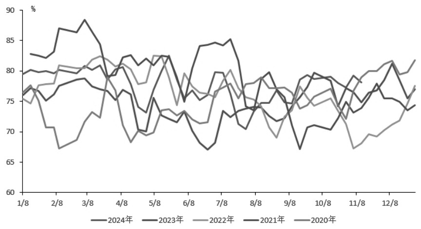 国庆节过后,下游需求暂未得到改善,叠加开工率居高不下,PVC重回基本面主导,开启震荡下行之路。 开工率居高不下 目前电石部分区域开始累库,下游需求以刚需为主,后期成本端继续上涨乏力,对PVC价格支撑有限。 美国周度原油需求开始回落。三季度旺季过后,在目前的低裂解利润下,预计原油需求环比回落,并且三大原油研究机构也持续下调了今年全球需求增速。另外,美国停止回购石油战略储备,未来10万桶/日的需求增量不再。供给端由于欧佩克推迟增产1个月,缓解了近期的供应担忧,但美国原油产量创下历史新高以及其他非欧佩克国抢占市场份额,预计原油在地缘风险议价挤出后,仍有下跌空间。 PVC检修减损量自7月以来逐渐减少,2024年1—10月PVC检修减损量累计在587.72万吨,同比减少0.18%,加上陕西金泰、浙江镇洋发展等新增产能投产,8月以来,PVC月度产量均处于历史同期最高位附近。 截至11月8日当周,新增LG化学等检修装置,PVC开工率环比减少1.11个百分点至78.08%,但较过去三年同期平均高出5.83个百分点,仍处于历年同期偏高水平。其中,主流电石法环比增加1.04个百分点至78.57%。虽然电石法PVC生产利润陷入亏损,但在“以碱补氯”下,企业氯碱综合利润尚可,PVC开工率还未受到价格下跌的影响。最近两个月PVC开工率基本处于79%左右的水平,居高不下。另外,冬季企业出于安全生产考虑,会积极保生产,预计PVC开工率将进一步提升。 需求端暂未改善 美联储开启降息后,国内一系列利好政策也接连出台,市场情绪得到提振。但从PVC直接下游需求表现来看,目前政策刺激还未传导至终端。截至11月8日当周,PVC下游行业开工率环比下降2.07个百分点至43.48%,同比下降0.94个百分点,其中型材开工率环比减少2.75个百分点至39.15%,管材开工率环比减少0.63个百分点至37.81%。虽然国庆归来前两周,PVC下游开工率一度走强,但随后市场情绪逐步回落,叠加北方气温降低,其开工率将一路走低。房地产方面,截至11月10日当周,30个大中城市商品房成交面积环比回落31.41%,未能延续此前的好转势头,再次回落至历年同期偏低水平。目前房地产市场难以拉动PVC需求,加上气温将继续降低,预计国内PVC需求继续走弱。 出口一度是PVC需求的亮点,但四季度难言乐观。8月下旬,BIS认证确认延期至12月24日后,PVC出现“抢出口”现象,9月出口达27.82万吨,同比增加24.03%,处于历年同期高位,仅略低于2024年3月及2022年4月。不过,2024年10月30日,印度商工部发布有关进口PVC的初步调查结果,拟对原产于中国大陆、中国台湾和韩国、日本、印度尼西亚、泰国、美国的PVC征收临时反倾销税,其中中国大陆为82~167美元/吨,叠加印度BIS政策即将到期,国内PVC出口至印度将减少,而出口至印度的量占整个出口量近一半,预计9月份出口量即是今年下半年的峰值。 需求不佳下,PVC去库放缓。截至11月7日当周,PVC社会库存环比增加0.70%至47.78万吨,比去年同期增加10.81%。社会库存小幅累积,仍处于历年同期最高位。 综上所述,一方面,PVC开工率居高不下,未来产量将进一步增加;另一方面,印度反倾销政策初步裁定及BIS政策即将到期,不利于国内PVC的出口。社会库存压力仍大,叠加仓单处于历史高位,预计PVC中线继续承压。 (责任编辑:迷你学人) |