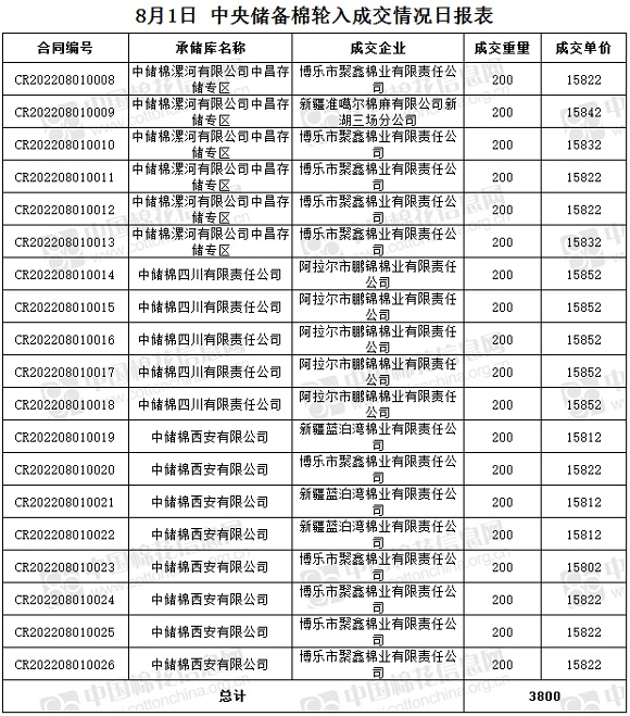8月1日储备棉轮入成交率63% 成交均价上涨36元/吨 中国棉花信息网 08月01日 8月1日中央储备棉轮入上市数量6000吨,实际成交3800吨,成交率63%。今日平均成交价为15829元/吨,较前一日上涨36元/吨。 其中内地库成交3800吨,成交承储库3家。 今日成交情况如下:(文章来源:中国棉花信息网) (责任编辑:admin)