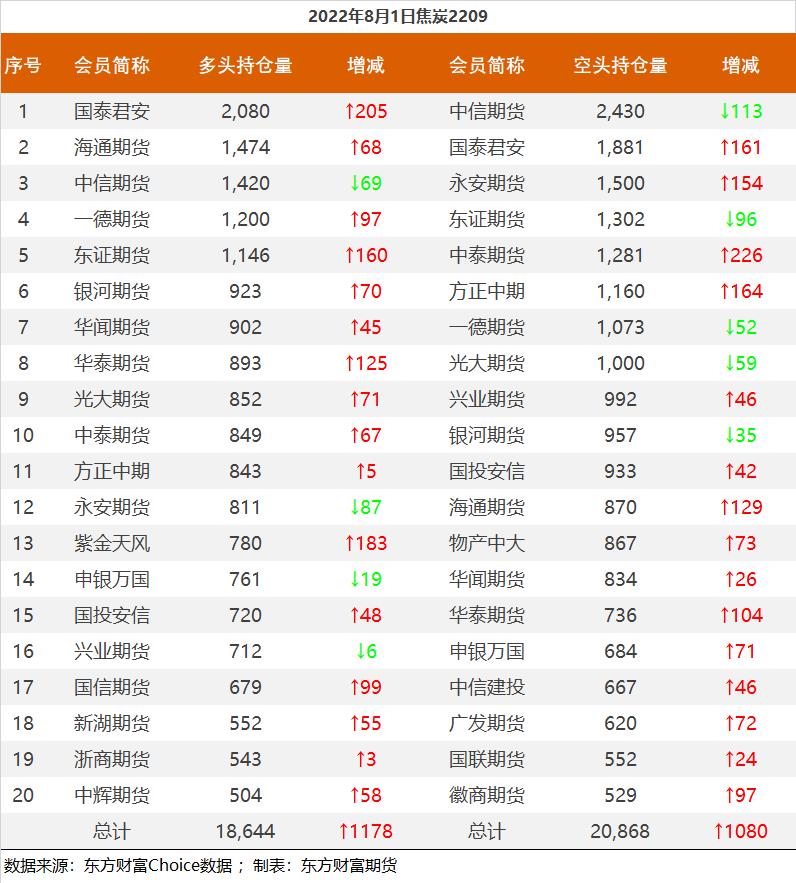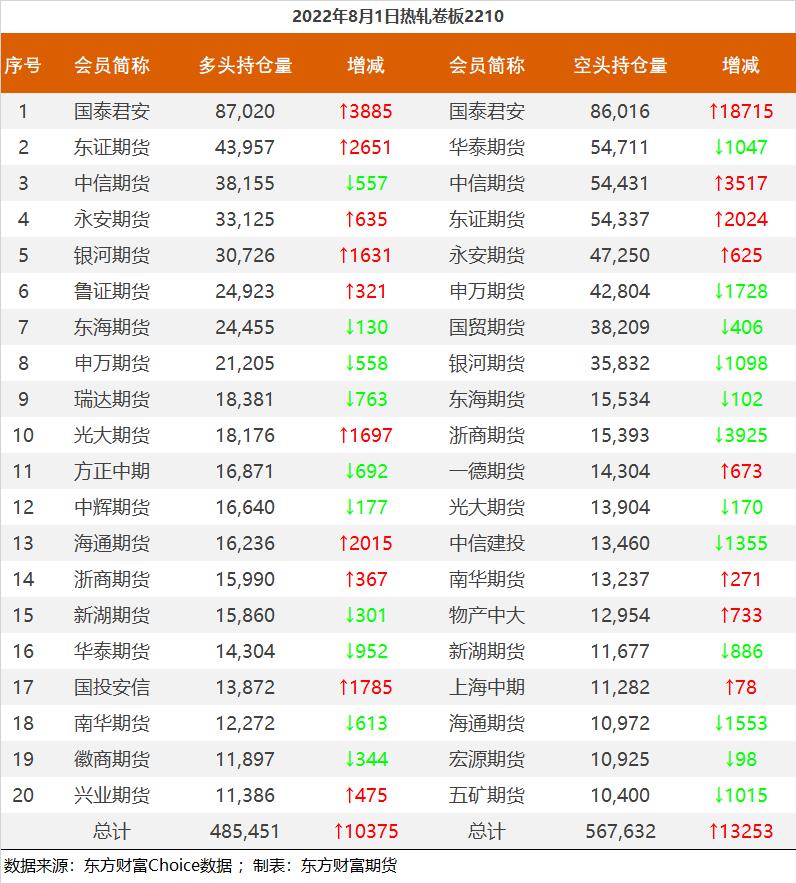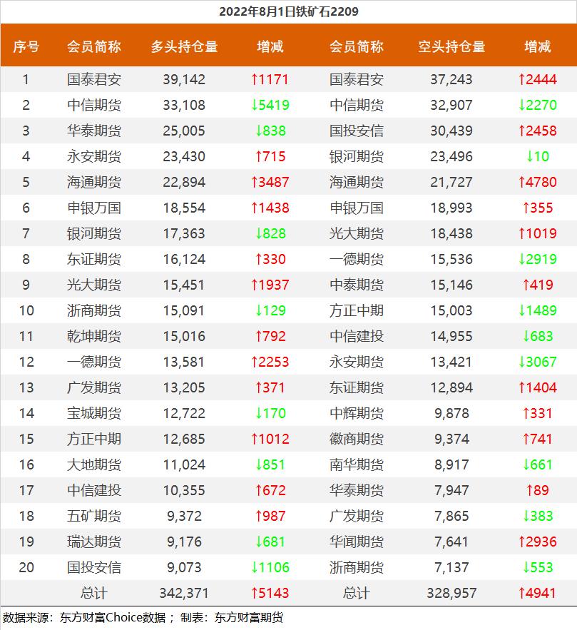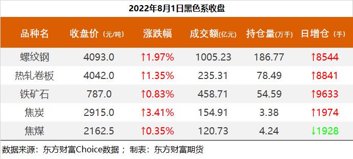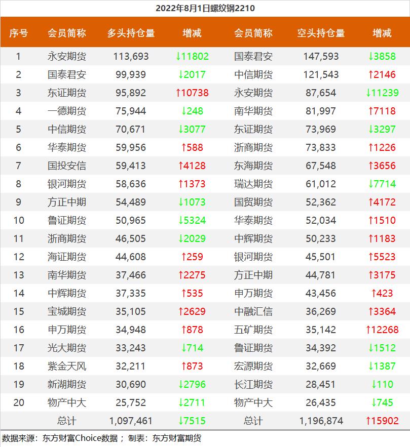 黑色持仓龙虎榜:螺纹涨1.97% 永安减持超1.1万手螺纹多单 东方财富网 08月01日 截至8月1日收盘,螺纹钢2210收4093元/吨,涨1.97%;热卷2210收4042元/吨,涨1.35%;铁矿石2209收787元/吨,涨0.83%。 各品种具体如下: 各品种持仓情况具体如下: (责任编辑:admin)