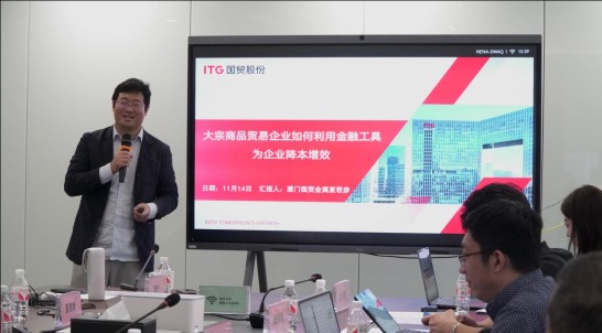 厦门国贸金属投研总监夏君彦介绍了大宗商品贸易企业如何利用金融工具为企业降本增效。他指出,大宗商品行业具备体量大、标准化、金融属性强、价格波动大的特征,贸易企业应当通过期货工具为企业进行风险管理,利用期权工具对价格波动进行精细化管理,采取衍生品工具解决供需错配、实际需求等问题。