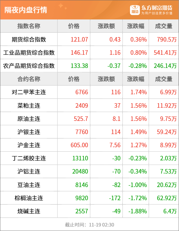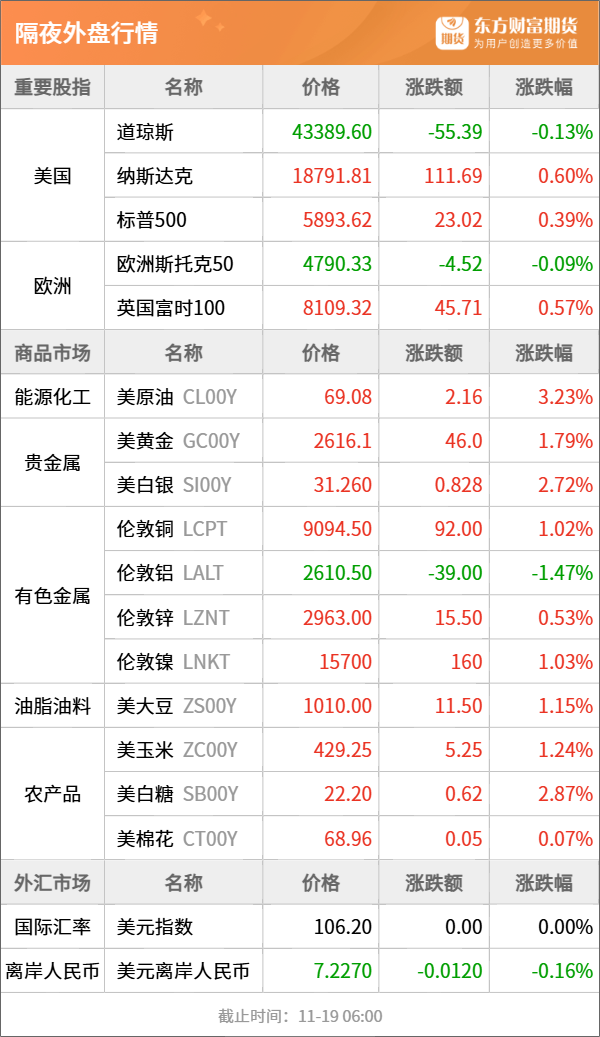东方财富期货早餐 11月19日 周二
