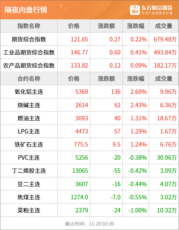 东方财富期货早餐 11月20日 周三