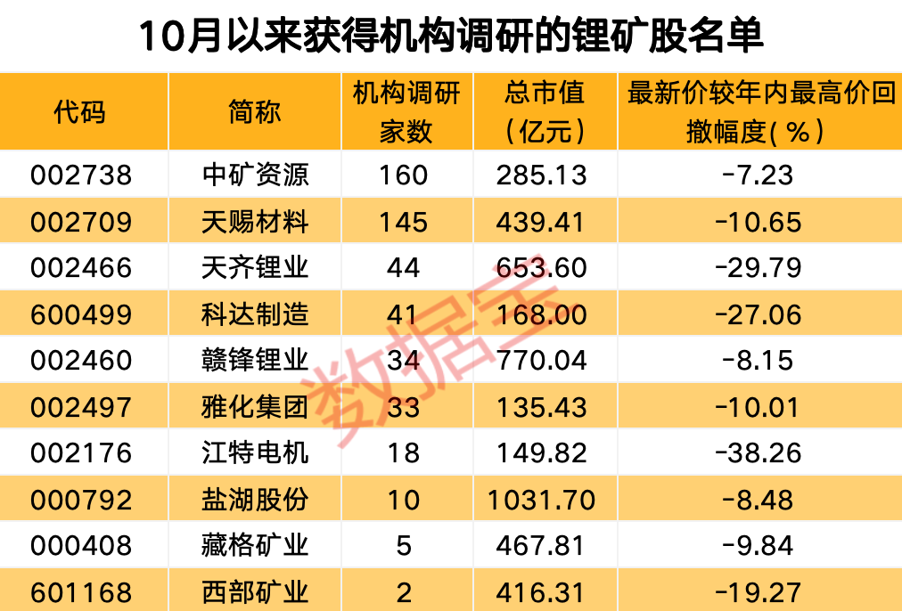 碳酸锂价格持续回暖 6股获超30家机构扎堆调研