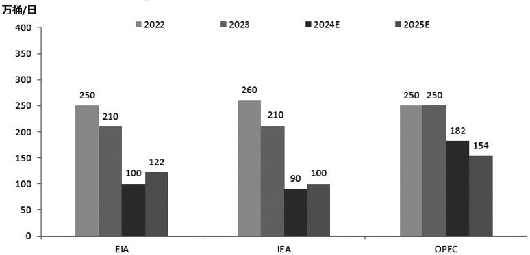 图为机构对全球石油需求增长的预测