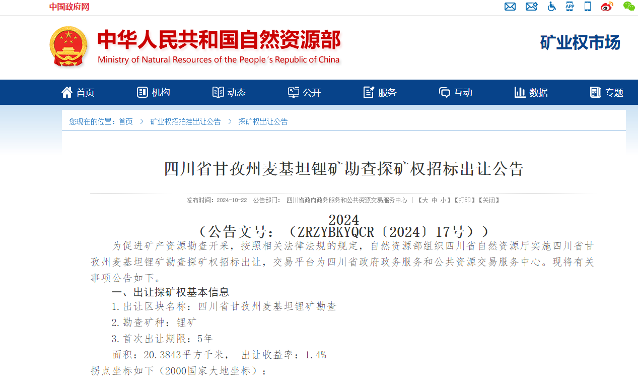 亚洲第一大锂辉石单脉矿权今日开标 参与企业在5家左右 或难复制64亿元“天价锂矿”疯狂