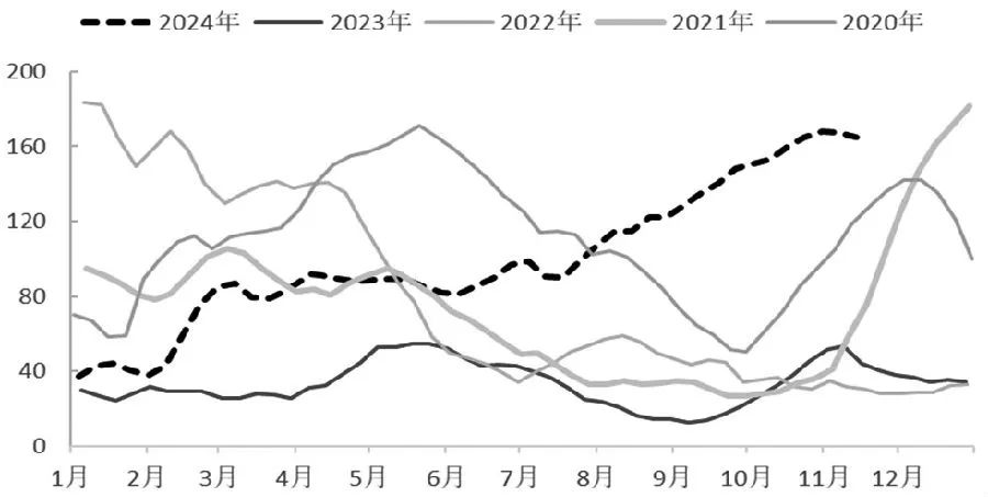 2024年纯碱价格大幅下挫,沙河重碱现货价格自年初的2800元/吨下跌至最新的1500元/吨,跌幅46.43%;期货主力合约自年初的2044元/吨跌至最新的约1500元/吨,跌幅26.61%。2024年纯碱价格大幅下跌,行业进入明显的下行周期,主要是受阶段性供应过剩影响。纯碱全年供应同比增近20%,全年需求增速仅个位数、下半年需求增速转负,供应过剩导致纯碱持续累库,价格下跌压力较大。经过近一年的下跌,纯碱期货和现货估值已较低,但产能尚未出清,价格难言见底。短中期纯碱仍面临较大的价格压力,建议上游企业积极拥抱期货,利用期货、期权等工具进行套期保值,SA2505上方关注1700~1800元/吨压力。 1.产能扩张供应压力明显 2024年纯碱价格下跌,本质上是周期的力量,核心驱动是产能扩张带来的供应过剩,下半年需求下降加剧了过剩幅度,进而造成价格的加速下跌。2021—2023年纯碱行业迎来三年牛市,生产企业获利颇丰,企业利润最高近2000元/吨。高利润刺激新产能投放,产能扩张速度远超需求增速,阶段性的供需错配造成纯碱价格大幅下跌。 从数据上看,2023年国内纯碱行业新增630万吨产能,至3850万吨,产能增速约20%。2024年上半年国内纯碱新增产能130万吨,至3980万吨,2024年下半年国内计划新增230万吨产能,全年产能增速约9%。近两年国内纯碱新增产能约1000万吨,累计增幅约30%。国家统计局数据显示,2024年1—10月国内纯碱产量同比增加498万吨,至3164万吨,增速18.70%。2024年1—10月国内累计进口纯碱97万吨,同比增加45万吨;1—10月累计出口纯碱88万吨,同比减少46万吨;1—10月国内纯碱净进口9万吨,全年纯碱净出口或在10万吨附近。 在供应增加影响下,2024年国内纯碱库存呈现增加趋势,但上半年累库和下半年累库不尽相同。上半年国内纯碱行业库存呈现增加趋势,但库存结构相对合理,上中下游均出现累库。7—11月纯碱延续累库趋势,但累库主要发生在上游,中下游库存变动不大。截至2024年11月15日,国内纯碱生产企业库存为165万吨,较6月底增加68万吨,较年初增加131万吨,较去年同期增加120万吨;最新国内交割库库存为37万吨,较6月底减少4万吨,较年初增加35万吨,较去年同期增加33万吨;最新国内玻璃企业纯碱原料库存天数为15.0天,较6月底减少6.8天,较年初减少0.2天,较去年同期增加3.0天。按照重碱下游平均15天的原料库存、轻碱下游平均7天的原料库存计算,目前国内纯碱上中下游显性库存共305万吨,其中上游库存165万吨,交割库库存37万吨,下游库存103万吨。若考虑隐性库存和在途库存,国内纯碱总库存约400万吨。当前国内纯碱库存升至高位,且累积趋势并未停止,当前纯碱需求疲软、产能无退出计划,预计年内和2025年上半年难以看到行业库存有效去化。 ![]() 图为国家统计局口径的2020—2024年中国纯碱月度产量(单位:万吨) ![]() 图为2020—2024年中国纯碱生产企业月度库存(单位:万吨) 2.周期转换下游需求走弱 近期纯碱价格弱势,除供应增加影响外,需求转弱也是重要因素。2024年重碱需求先升后降,上半年需求同比增加较多,但7月开始重碱需求明显走弱,光伏玻璃和浮法玻璃用碱需求均下滑。年内轻碱需求相对稳定,多数轻碱下游需求变动不大。重碱方面,截至2024年11月15日,国内浮法玻璃在产日熔量为158475T/D,较6月底下降11860T/D(降幅7.06%),较年初下降15050T/D(降幅8.68%),较去年同期下降13935T/D(降幅8.08%)。最新光伏玻璃在产日熔量为90819T/D,较6月底下降24521T/D(降幅23.85%),较年初下降8991T/D(降幅9.09%),较去年同期下降5741T/D(降幅5.95%)。 光伏玻璃和浮法玻璃用碱需求下降,主要是受终端光伏行业和地产行业调整拖累。受光伏行业产能过剩影响,目前国内光伏产业链陷入困境,硅料、玻璃、组件均被迫减产。三季度国内光伏玻璃日熔量下降近18000T/D,但库存并未有效去化,四季度库存再创新高,在亏损压力影响下,近期部分光伏玻璃产线被迫冷修。最新的光伏玻璃在产日熔量为90800T/D,继续下行空间不大,但光伏行业面临海外加征关税、国内装机速度放缓的压力,短期新增产能较为有限,用碱需求暂时难以增加。 四季度浮法玻璃价格有所反弹,行业平均利润从-190元/吨回升至68元/吨,主要是受地产政策利好影响。9月底至11月,国内出台降准降息、降存量房贷利率、降低首付比例、加大对房企资金支持、专项债收储等政策,市场预期有所改善,10月地产销售数据同比降幅明显收窄。但受地产周期影响,地产竣工面积仍然呈现下行趋势,1—10月国内房屋竣工面积为41995万平方米,同比下降23.9%;其中住宅竣工面积30702万平方米,同比下降23.4%。当前国内浮法玻璃在产日熔量约158400T/D,较年内峰值下降近10%,较去年同期下降近8%,短期浮法玻璃供需弱势平衡,利润暂时回正,但需求端压力较为明显,11月后需求将季节性转弱,行业面临累库压力。预计未来1到6个月浮法玻璃在产日熔量低位运行为主,难有明显增加,用碱需求维持相对低位。 综合来看,未来半年内光伏行业和地产行业均难有明显回升,光伏玻璃和浮法玻璃供应增量有限,用碱需求难以增加,玻璃企业现金流较为紧张,并无较大的补库意愿,而供应端纯碱仍有增加预期,预计SA2505合约面临较大的价格压力。 3.阶段减产难改疲软格局 受高库存和亏损影响,四季度部分纯碱企业主动减产,但行业供应过剩格局并未扭转。四季度山东海天、山东海化因亏损出现减量,重庆和友、四川和邦主动下调开工率,