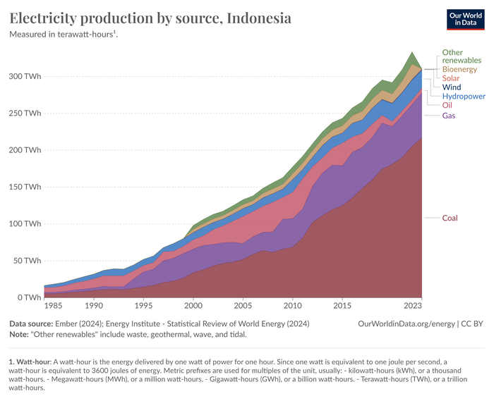 印尼是全球排名第三的煤炭生产国,仅次于中国和印度,2023年煤炭产量为7.752亿吨,创历史新高。 同时,该国也是全球最大的动力煤出口国。Kpler船舶追踪数据显示,2023年,全球动力煤出口量为10.22亿吨,印尼出口量达到5.054亿吨,占比近一半。 据船舶经纪与服务集团班切罗·科斯塔援引AXS Marine船舶航运跟踪数据,今年1-8月,国际海运煤炭装载量累计为9.007亿吨,其中印尼煤炭出口同比增长8.3%,达到3.453亿吨, 占全球海运煤炭市场的38.3%。 ![]() 印尼发电结构变化,图片来源:Our World in Data 依托自身丰富的煤炭资源,印尼也成为了煤电大国。英国智库Ember数据显示,2023年印尼煤电发电量占比61.83%、燃气发电量占比17.7%,水力和生物质发电量占比分别为7.01%和6.41%。 2014年,印尼发布《国家能源政策》,计划到2025年将可再生能源占比提高至23%,到2050年达到54%。根据印尼国家电力公司的电力采购计划(RUPTL),印尼在2021年至2030年间将增加21 GW的可再生能源容量。 2022年,美国、日本等十个国家宣布启动与印尼的公正能源转型伙伴关系(JETP),这一伙伴关系承诺提供高达200亿美元的资金支持印尼能源转型。根据协议,印尼将加快可再生能源的部署,2030年可再生能源发电量占比至少要达到34%。 印尼的煤电项目建设引入了大量海外企业,中企是印尼煤电项目主要的开发商和投资商。加速煤电退出将影响投资商的收益回报。 根据马里兰大学和IESR联合研究的统计,参与印尼煤电项目开发的中国企业包括国家能源集团、大唐集团和华电集团。此外,中国电建、协鑫集团、中国能建、国家电投和泛海控股也参与建设了印尼燃煤电厂的建设。 其中,国家能源集团投建的印尼爪哇7号项目总投资18.83亿美元,总装机容量2×1050MW,是中国企业在海外投资建设的单机容量最大的火电机组,于2020年9月全面竣工。 ![]() 数据截至2022年10月,图片来源:马里兰大学和IESR报告《 印度尼西亚加速煤炭转型对中国发电商的影响》 燃煤电厂通常拥有30-40年的运营年限,按照印尼未来15年内,即2040年前就将淘汰所有燃煤电厂的计划,中国企业开发煤电项目退出的成本将显著增加。 例如,2023年9月,华电集团投资建设的印尼玻雅项目才正式投产,该项目建设了2×660MW清洁高效燃煤机组。 根据马里兰大学和IESR的研究报告,大多数中资燃煤电厂的现有运营年限较短,超过92%的装机量将在2035年后开始退出,超过50%将在2040年以后退出。随着可再生能源成本的降低和燃煤电厂二氧化碳排放成本的增加,现有燃煤电厂的价值也将在未来进一步降低。 不过,在面对煤电退出的同时,中企也在积极进入印尼的可再生能源市场。 今年3月,国家能源集团所属国电电力(600795.SH)宣布中标印尼卡朗卡德斯地区的10万千瓦漂浮式光伏电站项目。这是中资企业首次成功中标印尼的集中式光伏项目,也标志着中企正式入局印尼可再生能源项目投资市场。 (文章来源:界面新闻) (责任编辑:迷你学人) |