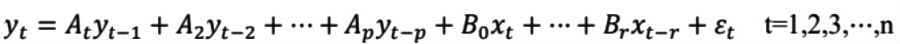 其中,Xnew是标准化后的数据,X是原始数据,Xmin原始数据的最小值,Xmax是原始数据的最大值。 [因子分析] 因子分析的原理主要是可以在损失较少原始数据信息的前提下,用较少的综合指标来代替较多的原始指标,达到对原始变量重新分类和降维的效果。这些综合指标代表了原始指标的主要信息且互不相关,被称为公共因子。宏观经济变量之间相关性较强,分析时如果直接用这些变量对铜价进行研究,那么不可避免会存在很强的共线性问题。因此,采用因子分析对26个宏观经济变量进行分类,不仅可以解决共线性的问题,而且可以全面反映经济运行情况及内部结构。表1详细报告了因子分析的结果,通过最大方差旋转法对因子载荷矩阵进行旋转后可知,26个宏观经济变量均可由5个组合因子进行解释。 从因子载荷角度考虑,第一个因子(F1)主要解释了房屋施工面积累计同比、房地产开发投资完成额累计同比、社融存量同比、人民币汇率、互换利率、Shibor这6个变量的变化,主要反映了房地产投资与施工链条景气会增加对资金的需求,从而推升利率和社融。这表明利率变动与房地产投资息息相关,F1可以称为利率因子。 第二个因子(F2)主要解释了工业增加值、工业企业利润增速、汽车产销增速、电源投资增速、出口金额增速、社零增速这7个变量的变化。可以看到,这7个变量均与工业企业经营生产状况有关,可以称之为工业生产因子。 第三个因子(F3)主要解释了M1和商品房销售面积累计同比、房屋新开工面积累计同比、房屋竣工累计同比这4个变量的变化。M1和房地产景气度正相关的基本逻辑是居民购买商品房的过程中,居民储蓄存款直接转化为企业活期存款,从而带动M1增长。总体看,可以把F3称为房地产因子。 第四个因子(F4)主要解释了进口金额增速、消费者信心指数、M2、PPI这4个变量的变化。可以看到货币供给M2与PPI、消费、进出口的密切关系。F4可以称为货币因子。 第五个因子(F5)主要解释了电网投资完成额增速、固定资产投资完成额增速,以及其分项基建投资增速、制造业投资增速、消费者信心、CPI这6个变量的变化,反映了投资支出对CPI和消费的逆周期刺激效应。F5可以称为投资因子。 综上可知,通过因子分析,可以将26个中国经济变量构建5个主要的组合因子,即利率因子(RATE)、工业生产因子(PRODUCTION)、房地产因子(REALTY)、货币因子(MONETARY)和投资因子(INVESTMENT)。 [实证分析] VAR模型构建 本文采用VAR模型(向量自回归模型)研究利率因子、工业生产因子、房地产因子、货币因子、投资因子与铜价之间的关系。VAR模型是一种用于分析多个时间序列变量之间相互关系的统计模型。它通过将多个时间序列变量的过去值作为解释变量来建模当前值。VAR模型的基本形式可以表示为: