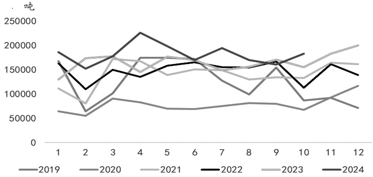 图为废铜月度进口数量 中国铜需求表现偏强 2024年前三季度,全球精炼铜表观使用量增长了约2.5%。中国表观需求增长了约3%。欧盟、日本和美国的需求疲软被一些亚洲、北非国家的增长所抵消。 10月以来,我国电线电缆出口量大幅增长。11月以来,国内铜线缆企业景气持续,开工率实现连续四周增长,达到90.3%。受部分海外客户备货提前、订单前置的影响,10月铜管出口31054吨,环比增长12.1%,同比增长27.7%;10月家用空调出口658万台,同比增长54.3%。国补政策和“双11”共同影响下,10月国内空调内销出货628.9万台,同比增长24.1%。最终,10月家用空调生产1405.7万台,同比增长48.0%,环比增长15%。奥维云网最新排产监测数据显示,2024年11月家用空调排产1314万台,环比增长27%,同比增长33.6%。