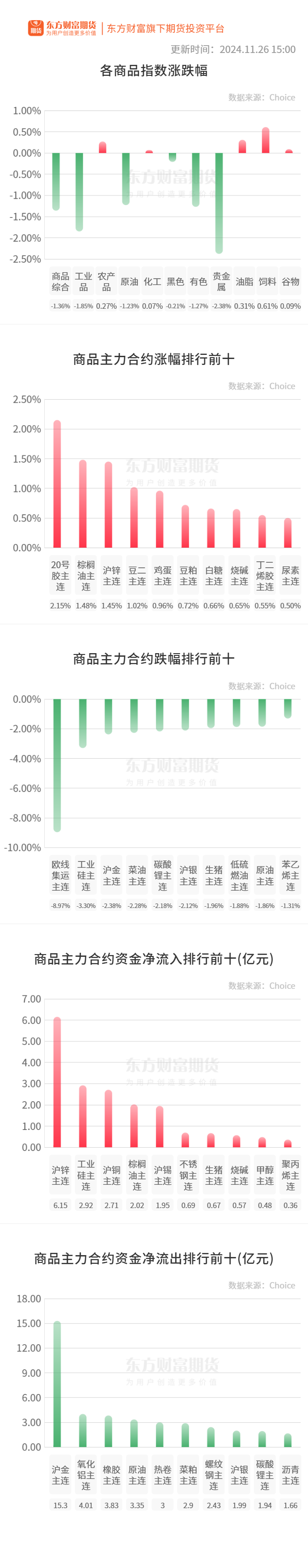 期市收评 | 商品期货跌多涨少 贵金属板块跌幅居前
