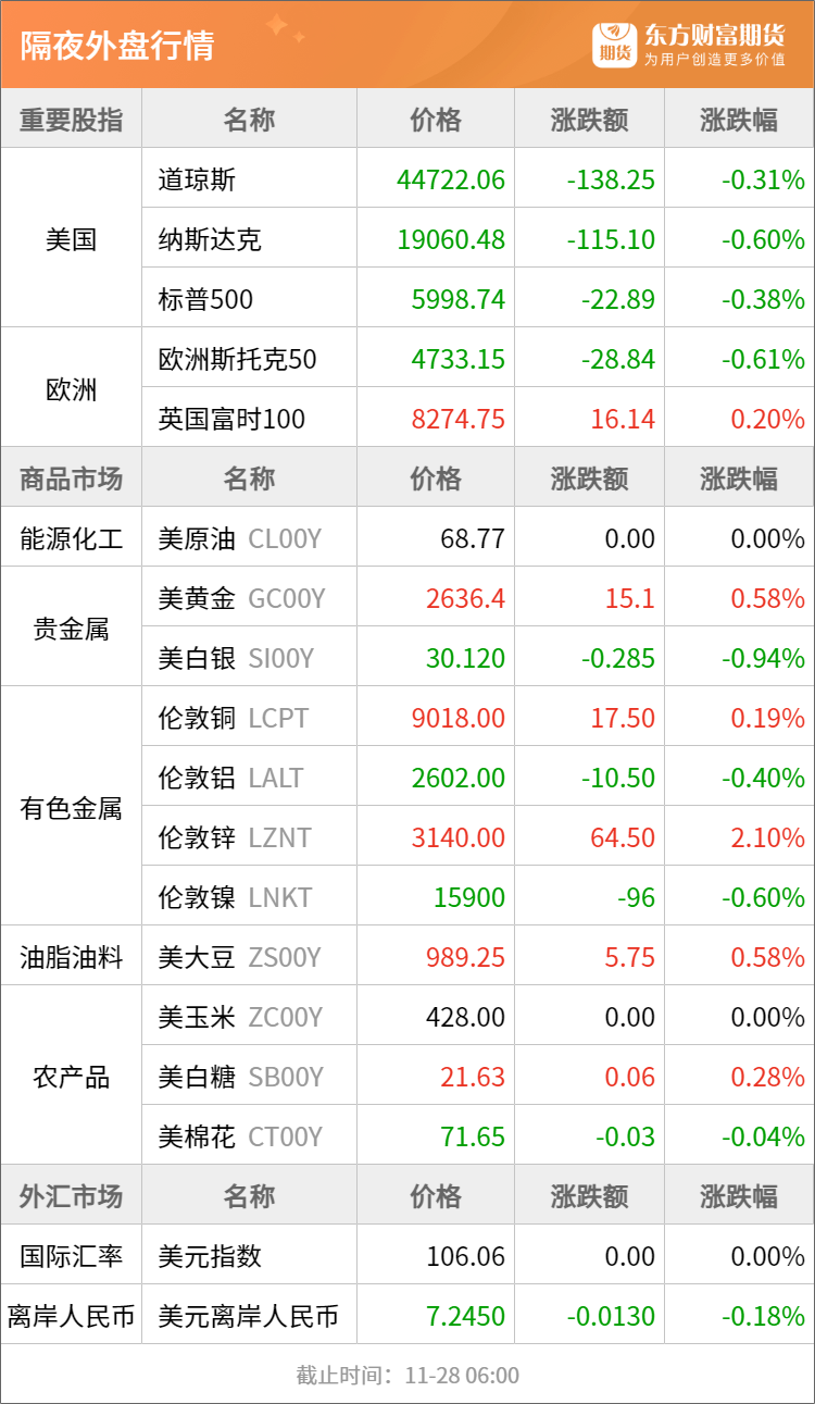 东方财富期货早餐 11月28日 周四