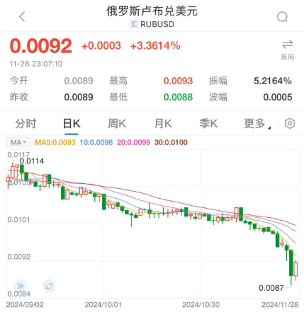 普京紧急回应卢布暴跌 11月27日,俄罗斯卢布出现恐慌性抛售,卢布兑美元汇率盘中一度跌超8.5%。截至27日的一周,俄罗斯汇率暴跌10%,创2022年3月以来的最低纪录。 28日晚间,俄罗斯卢布稍有回暖,截至发稿,卢布兑美元汇率涨超3%。 ![]() 俄罗斯总统普京在哈萨克斯坦阿斯塔纳的新闻发布会上表示,“当前情况受到多种季节性因素的影响,例如预算支付和油价,局势在掌控之中,完全没有必要恐慌”。 普京还表示,除了提高基准利率之外,还有其他“工具”可以用来应对通胀,但最终如何遏制价格增长是央行的决定。 ![]() 根据俄罗斯央行的数据,自11月21日美国制裁约50家俄罗斯银行以来,卢布兑美元和人民币的汇率均已下跌近8%。这可能进一步推高通胀,而俄罗斯央行一直试图通过将利率提高到创纪录的高位来遏制通胀。 俄罗斯央行表示,已准备好将借贷成本进一步提高,目前利率为21%,以将通胀率在明年恢复到4%的目标水平。市场估计,下一个可能的措施是将利率提高到25%。 俄罗斯经济学家亚历克斯·伊萨科夫表示,“俄罗斯央行面临两难选择:是进一步加息,尽管这增加了经济衰退的风险,还是接受更高的通胀压力,政策制定者可能会选择前者”。 央行被迫干预 自今年年初以来,卢布兑美元已贬值19%,成为表现最差的新兴市场货币之一。自6月美国制裁莫斯科交易所并立即停止美元和欧元交易后,俄罗斯央行通过银行间交易计算汇率。 自2023年底美国威胁对与俄罗斯合作的金融机构实施二级制裁以来,俄罗斯出口商和进口商在国际支付方面面临困难。新一轮的限制可能进一步复杂化外贸交易,并减少出口商将外汇流动性引入俄罗斯的动机。 对此,俄罗斯央行于周三晚间宣布,停止在国内市场购买外汇至2024年底。 有分析表示,这或许能缓解当前的外汇短缺,但不足以促使卢布出现实质性反弹。 ![]() 今年10月份,尽管俄罗斯央行已将利率提高至21%,但这一措施仍未能遏制快速上涨的物价。10月的通胀率达到8.5%,而黄油和土豆等基本食品的价格在过去一年中大幅上涨。 哈萨克斯坦自由金融全球分析师娜塔莉亚·米尔查科娃指出,“俄罗斯12月加息本身不可避免,但现在幅度应至少是之前预期的一个百分点的两倍”。 密切关注俄罗斯地缘政治和宏观经济的分析人士认为,卢布的疲软反映出莫斯科经济状况的快速恶化。 蓝湾资产管理公司的新兴市场策略师蒂莫西·阿什将卢布描述为“自由落体”状态,表示俄罗斯似乎正在酝酿“一场真正的货币危机”。 阿什评论道:“卢布贬值意味着更高的通胀、更高的央行政策利率以及更低的实际GDP增长。” 卢布贬值正值拜登政府试图在特朗普明年1月就职前对克里姆林宫施加更大压力之际。针对俄罗斯天然气工业银行的新一轮制裁尤其严厉,禁止其处理任何涉及美国金融体系的能源相关交易。 RSM美国公司首席经济学家约瑟夫·布鲁苏埃拉评论称:“两年的制裁显然正在对俄罗斯经济造成破坏,中央银行似乎已耗尽非常规措施。” (文章来源:中国基金报) (责任编辑:迷你学人) |