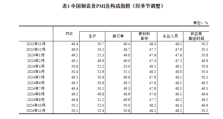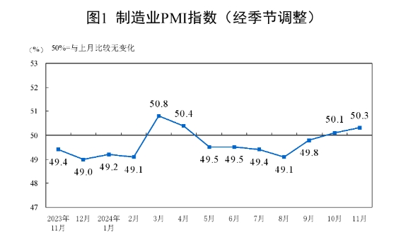 国家统计局:11月份制造业PMI为50.3% 比上月上升0.2个百分点