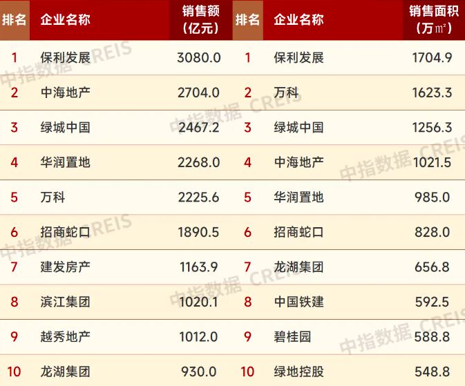 11月30日,中指研究院发布2024年1-11月中国房地产企业销售业绩排行榜。榜单显示,前11个月销售额前三名为保利发展、中海地产、绿城中国,分别为3080亿元、2704亿元、2467.2亿元;销售面积前三名为保利发展、万科、绿城中国。 ![]() △来源:中指研究院 中指研究指出,2024年1-11月,TOP100房企销售总额为38516.0亿元,同比下降32.9%,降幅较上月缩窄1.8个百分点。11月单月,TOP100房企销售额同比减少9.46%,环比减少18.62%。其中,典型企业如华发股份、保利置业、中建东孚等11月当月销售增长强劲。1-11月销售总额超千亿房企9家,较去年同期减少7家,百亿房企76家,较去年同期减少32家。TOP100房企权益销售额为26923.6亿元,权益销售面积为14515.6万平方米。