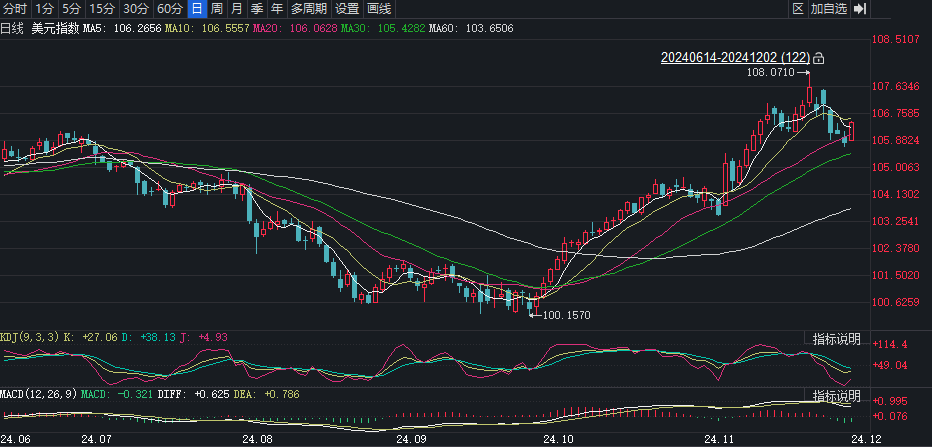 12月的首个交易日,在岸和离岸市场人民币双双出现贬值。当日,离岸人民币对美元汇率开盘跌破7.25,随后进一步跌破7.29关口,盘中最低至7.2957,较前一交易日下跌超400个基点,创下7月以来新低。 ![]() 值得注意的是,11月下旬美元指数一度创下年内高点108.06期间,彼时人民币汇率顽强徘徊在7.23-7.25之间。 沽空非美货币的行情不会持续,美元下跌风险正在增加 一位香港银行外汇交易员对记者指出,12月2日人民币汇率快速下跌,主要受两方面因素影响。一是金融市场正在提前炒作特朗普的“关税政策”,纷纷押注非美货币下跌;二是当日10年期中国国债收益率一度跌破2%整数关口导致中美利差倒挂幅度走阔至-217个基点,吸引境外部分量化基金纷纷加大离岸人民币空头持仓,拖累境内外人民币汇率应声下跌。 他告诉记者:“一直以来,境外量化基金都在持续跟踪中美利差倒挂幅度是否走阔,作为他们增加离岸人民币空头持仓获利的重要投资依据。”他认为,12月2日影响人民币汇率快速下跌的最大资本力量,仍是炒作美国关税政策的海外投机资本。 目前,众多海外投资机构认为,美国关税政策一方面令其境内通胀压力回升概率增加,迫使美联储不得不放缓降息步伐,美元走强;另一方面也令其他经济体经济增长基本面受到冲击,有助于美元指数坚挺。 嘉信理财首席固定收益策略师凯西-琼斯(Kathy Jones)认为,2025年影响美元走势的关键将是特朗普的“关税政策”。而摩根大通、高盛和花旗此前预计,特朗普的关税政策被金融市场普遍认为将增加美国国内通胀压力并损害其他经济体,美元或继续走强。