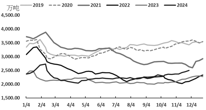 图为统计样本焦煤总库存 库存有所回升 6月以来,随着山西煤矿“三超”整治工作告一段落,主产区焦煤供应逐渐回升。钢联数据显示,3—5月全国523家炼焦煤矿原煤日均产量约192万吨,较去年同期低25万~35万吨。6月以后,炼焦煤矿生产水平稳步恢复,原煤日产量回升至200万吨上方,同比减量明显收窄,并高位企稳运行。截至11月29日当周,全国523家炼焦煤矿原煤日产录得204.3万吨,同比高10.3万吨。进口方面,今年1—10月,我国进口炼焦烟煤9925万吨,在去年高基数的背景下实现同比23.3%的快速增长,我国焦煤供应较为充足。 与高供应不同,下游焦企受限于利润,开工情况始终不温不火,今年“金九银十”期间,焦炭日均产量同比显著偏低。焦煤供强需弱格局并未扭转,产业链库存持续回升。截至11月29日当周,焦煤总库存达到2865.5万吨,较去年同期高274.9万吨,且处于近三年同期最高水平。高供应、高库存,且需求支撑不足,可见焦煤基本面疲弱对价格形成压制。产业端唯一值得关注的是,钢厂利润尚可,今年淡季焦煤、焦炭需求均表现出一定韧性,季节性走弱特征暂不明显。 整体来看,疲弱基本面是压制焦煤期货走弱的主要因素,但考虑到12月政策端不确定性仍存,且蒙煤长协成本以及盘面技术点位均能给价格带来一定支撑,预计焦煤下行阻力将逐渐加大,短期内或维持区间震荡格局。不过,目前焦煤相对估值较低,一旦市场氛围转好,其将具备较强反弹动能,因此空配该品种时也需密切关注政策端情况。(作者单位:宝城期货) (责任编辑:迷你学人) |