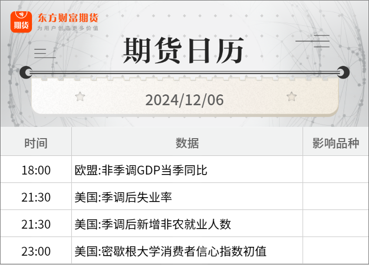 东方财富期货早餐 12月6日 周五