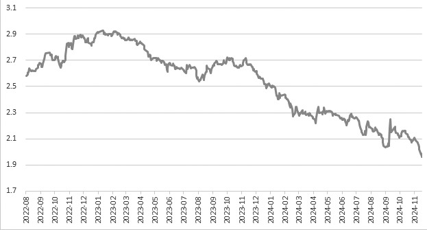 图为10年期国债到期收益率(单位:%) 12月依然处于跨年行情窗口期,债市仍将以偏多行情为主。但需关注汇率对货币政策预期的影响以及内外需共振可能带来的阶段性波动。考虑到明年政策利率仍有较确定的下行空间,若出现调整,将是较好的配置机会。 从基本面来看,11月国内制造业PMI数据达到了50.3%,连续两个月重返扩张区域,显示出底部复苏的迹象。具体来看,生产指数攀升至52.4%,表明企业在供应端受到政策激励的影响更加显著。不过,价格指数仍处于收缩区间,反映出市场需求回暖尚且不顺畅。此外,11月出口新订单有所增多,出口小企业PMI增加,反映出“特朗普交易”提前显现。11月26日,特朗普通过社交媒体宣布,他将在就职首日对中国进口商品加征额外10%的关税,给明年出口形势蒙上了阴影。2024年前10个月国内出口数据表现亮眼,明年出口增速能否持续有待验证。 从政策面来看,市场等待中央经济工作会议定调,预计稳增长主线不变,会议可能延续偏积极的态度,但需要考虑的是财政政策和货币政策配合的形式和方向。中央经济工作会议定调和定性后,财政相关议案需要按流程审批,而货币政策本身具有“相机抉择”属性,因而大概率先行且快于财政政策,货币政策包括降准、继续买债、两种逆回购工具放量、降息等。若财政方面有超预期的增量政策,则宽信用预期将扭转,届时可能会带来市场风险偏好提升。 从供给面来看,虽然今年年初预算内的政府债剩余发行额度相对不高,但已明确年内落地2万亿元新增地方政府专项债务限额,在化债主线下,假设2万亿元置换隐债专项债全部落地,预计12月政府债净供给主要是“超9100亿元置换隐债专项债+80亿元普通国债+460亿元新增一般债”,共9500亿元左右,12月仍然是年内供给小高峰。同时,关注12月下达2025年提前批新增专项债的情况,预计有2.4万亿元左右规模,不排除有小幅增量在12月下旬落地的可能。考虑到央行年末或通过多项工具呵护流动性,叠加部分机构可能存在“抢跑”行为,预计债市供给压力相对有限。 从机构投资行为来看,年末机构“抢跑”已启动,带动长债收益率再破前低,短期政策真空期内市场整体偏向多头。11月的机构抢配行情中,基金购债明显提升,增持大量政金债老券,而股份制商业行和城商行减持力度较10月进一步增强,主要卖出品种为利率债和存单。年内新增2万亿元置换隐债专项债主要承接方或是保险公司和农商行,年底长久期配置需求或仍对债市形成一定支撑。 从资金面来看,央行11月通过买断逆回购和净买入国债操作投放流动性1万亿元,对流动性呵护有加,月初银行间市场流动性整体宽松。临近年末,金融机构跨年流动性需求较大,央行大概率加大资金投放力度以补充流动性。从历史经验来看,往年12月末央行都会加大逆回购投放力度。10月18日,央行行长潘功胜在2024金融街论坛年会上表示:“预计年底前视市场流动性情况,择机进一步下调存款准备金率0.25~0.5个百分点。”央行或将根据增发政府债的规模来配合降准操作,大概率会在12月上中旬为对冲政府债供给冲击影响,向市场投放流动性,这也使得央行近期实施降准的可能性增大。 综合来看,资金面和政策面将是影响年末债市的重要因素。在宽货币和宽信用逻辑下,债市仍然存在走强的基础,与此同时,潜在的政策预期差修正又或使债市延续宽幅波动特征。