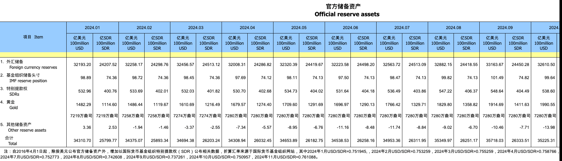 中国11月末外汇储备32658.60亿美元 央行时隔半年首次增持黄金