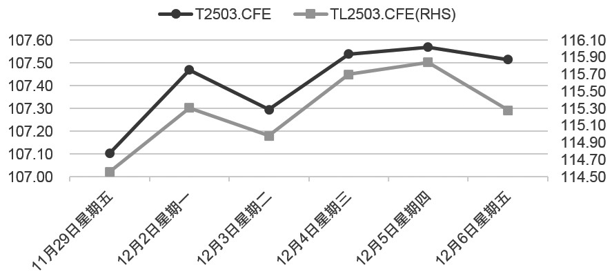 图为过去一周国债期货走势 债市上行趋势能否延续,取决于前期的决定因素是否被充分定价,未来是否依然存在。据笔者观察,从流动性的边际收敛、基本面预期的趋同以及市场消息逐渐匮乏等现象看,市场环境的边际变化值得警惕。 流动性方面,消息面、经济数据以及一些监管行为决定了最近一轮债市上行的期现结构和曲线变动,但归根结底,导致收益率曲线整体下移的主要因素是流动性。从11月央行的公开市场操作情况看,8000亿元买断式逆回购、2000亿元国债净买入以及9000亿元MLF续作,再加上前期持续的周度大额净投放和12月很大概率落地的降准,不论是现实还是预期,资金层面都是十分宽松的。但随着央行通过逆回购持续回笼资金,可以看到上周以来资金利率中枢开始上行。考虑到上周五恰逢资金跨月时点,月初资金价格较月末不降反升,说明流动性正在边际收敛。 从预期层面看,11月以来人民帀汇率承压,但国内市场反映有限。这并不意味着国内资产与汇率脱敏了,而是当前许多投资者认为主动贬值也是一种对冲外部风险的手段,是央行有意为之。而未来汇率是否会再度对货币政策形成制约需要关注两个方面,一是未来国内的政策从力度到实际效果能否承接市场的期待,二是FOMC的议息决议的情况,倘若美联储继续降息,短期流动性压力会相对偏小。 经济预期的趋同同样有两个迹象,一是市场对数据的敏感性在逐步减弱,二是官方媒体进行预期管理后市场认知会逐渐趋于一致。以11月PMI数据为例,从总量层面看,11月制造业PMI较前值上行0.2个百分点,从结构层面看,喜忧皆有,比如生产指数和新订单指数代表的供需两端双双走强,中小企业指数有所改善,但库存和价格指数进一步回落。总体看,笔者认为市场已经习惯了结构性的数据,理解了经济复苏阶段需要的工作量和时间。 另外,上周三新华社发文谈经济增速,提到“速度再快一点,非不能也,而不为也”。市场对此的解读一方面是对年内增长目标完成情况的自洽,另一方面则据此下调了对年底中央经济工作会议的政策预期。