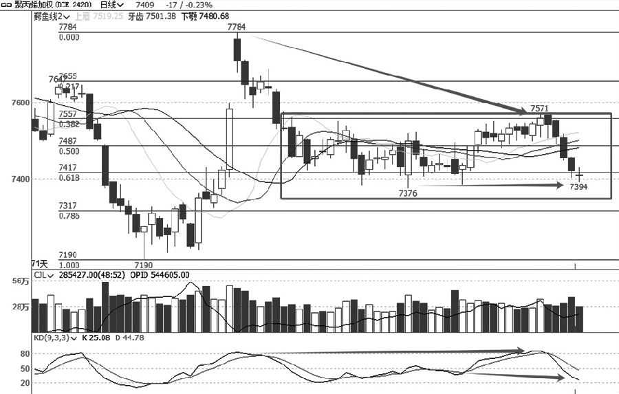 从聚丙烯加权日线走势可以看出,该品种国庆节以后就展开调整走势,由单边下跌转为震荡走低,价格跌至节前涨幅0.618以下的位置。随后低位区间震荡,形成小型的三重底后展开反弹,并上破区间上沿,但是反弹走势并未延续,反而是急转直下快速走低。目前价格再度回归至区间下沿,接下来就要考验前期低点支撑的有效性。如果不破,则当下的底部确立,后市将会再创新高;如果下破,则意味着节前的反弹结束,价格将冲击前期低点。(中辉期货 李卫东) (责任编辑:迷你学人) |