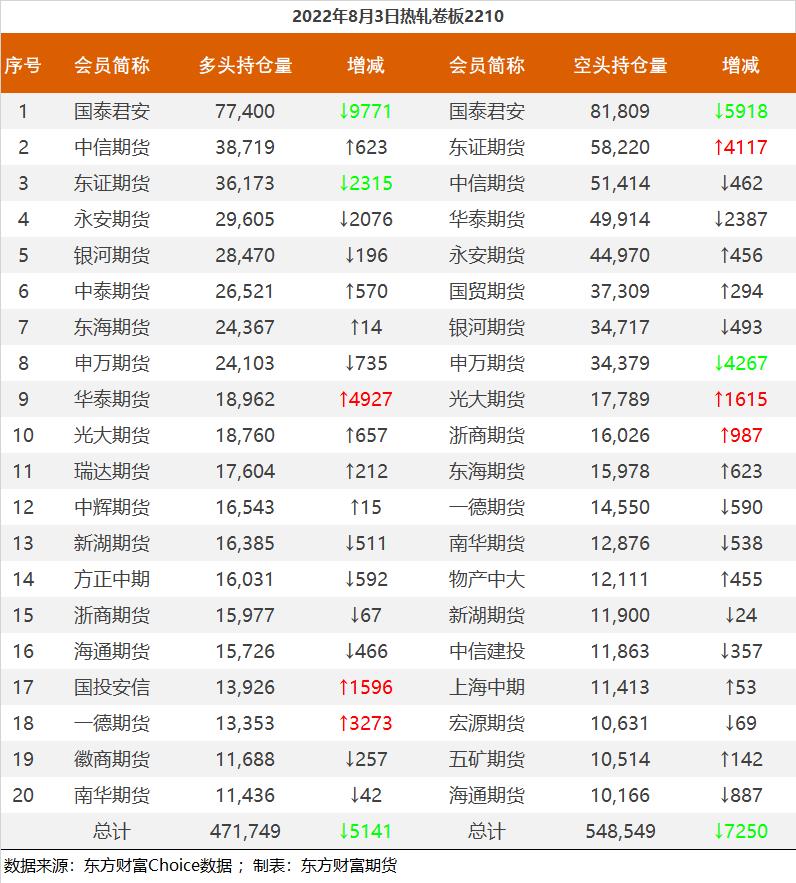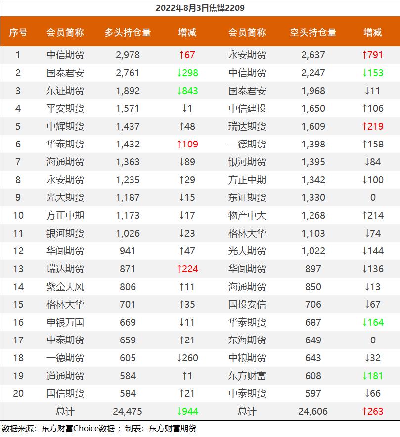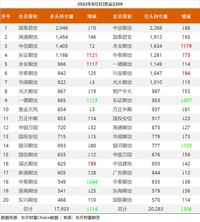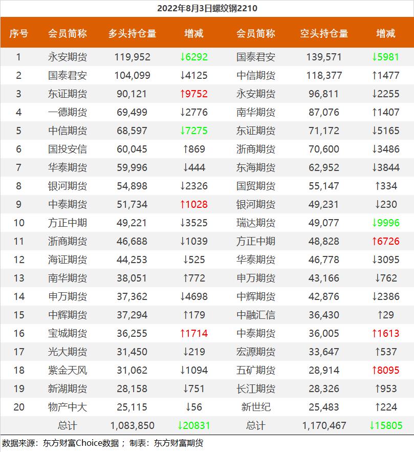 | 截至8月3日收盘,螺纹钢2210收4063元/吨,跌0.02%;热卷2210收4020元/吨,涨0.07%;铁矿石2209收786.5元/吨,跌0.82%;焦炭2209收2954.5元/吨,涨1.55%;焦煤2209收2212.5元/吨,涨0.82%。 螺纹钢2210合约前20席位多单减仓20831手至108.3万手,空单减仓15805手至117万手,整体净空86617手。其中永安期货多单减持6292手,空单减持2255手,整体净多23141手。 各品种具体如下: ![]() 各品种持仓情况具体如下: ![]() ![]() ![]() ![]() ![]() (文章来源:东方财富研究中心) (责任编辑:admin) |
