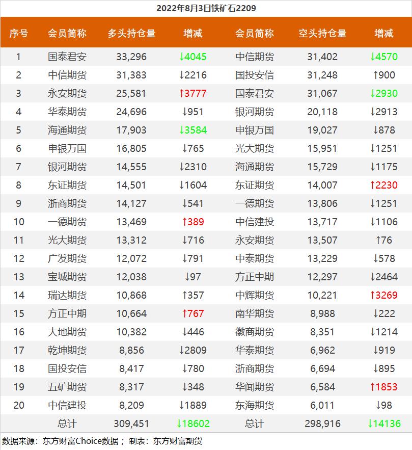 黑色持仓龙虎榜:铁矿跌0.82% 永安减持超6千手螺纹多单