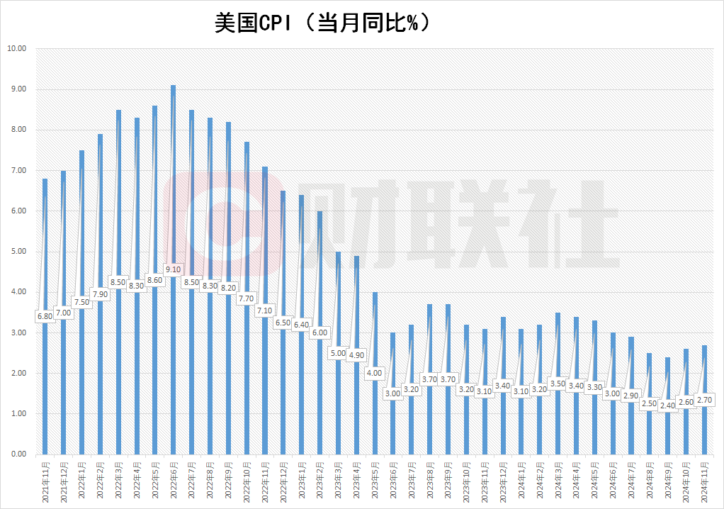 美国11月CPI同比增长2.7% 符合市场预期 财联社 12月11日 美国11月CPI同比增长2.7%,预估为增长2.7%,前值为增长2.6%;11月CPI环比增长0.3%,预估为增长0.3%,前值为增长0.2%。 美国11月核心消费者价格指数同比增长3.3%,预估为增长3.3%,前值为3.3%;环比增长0.3%,预估为增长0.3%,前值为增长0.3%。(文章来源:财联社) (责任编辑:迷你学人)