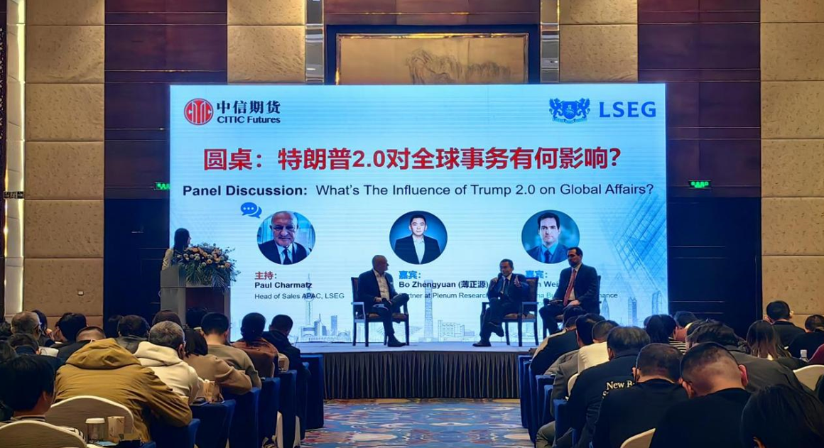 继八月在杭州举办“护航未来——全球地缘焦点探讨”,十月在上海举行的“2024全球农业市场——机遇与挑战”,十二月又在青岛齐聚一堂、展望未来。本次论坛由中信期货主办,伦敦证券交易所集团特邀参与,邀请国内外宏观和能源领域的专家及学者进行观点分享,与会企业140家,人数超260人。