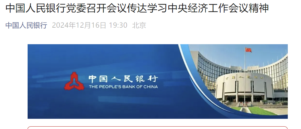 【导读】央行重磅发声,综合运用多种货币政策工具适时降准降息 央行:适时降准降息,支持房地产市场止跌回稳 据央行官微,12月16日,中国人民银行党委召开会议,传达学习中央经济工作会议精神,按照全国金融系统工作会议部署,研究明确贯彻落实举措。中国人民银行党委书记、行长潘功胜主持会议,各党委成员出席会议。 以下会议的重点内容。 ![]() 实施好适度宽松的货币政策。适时降准降息,保持流动性充裕,使社会融资规模、货币供应量增长同经济增长、价格总水平预期目标相匹配。 增强外汇市场韧性,稳定市场预期,保持人民币汇率在合理均衡水平上的基本稳定。 科学运用结构性货币政策工具,并与财政等政策相协同,打好政策“组合拳”。 提振消费、稳外贸,促进房地产市场和资本市场平稳发展。 继续做好金融支持融资平台债务风险化解工作,支持房地产市场止跌回稳。 稳慎扎实推进人民币国际化,进一步增强人民币跨境支付、投融资、储备、计价等国际货币功能。提升人民币跨境支付系统竞争力。 务实做好中美、中欧等双边金融工作。 支持上海国际金融中心建设与发展,巩固和提升香港国际金融中心地位。