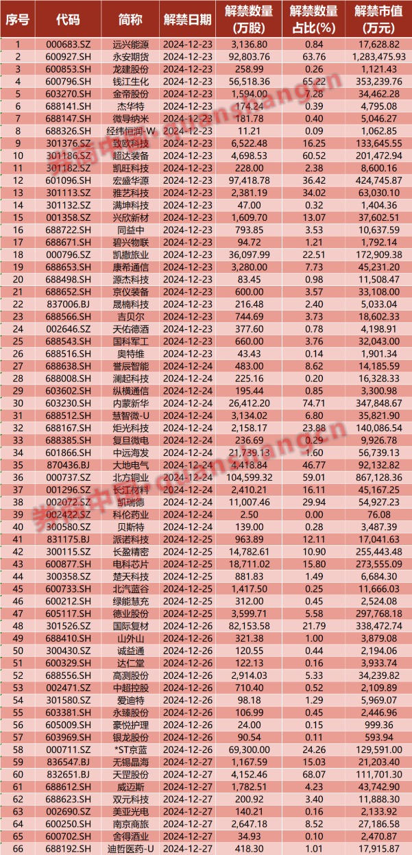 证监会最新发布!涉及"关键少数" 12月20日,证监会发布《监管规则适用指引——机构类第4号》(以下简称《指引》),对《证券基金经营机构董事、监事、高级管理人员及从业人员监督管理办法》相关规定进行解释,明确要求拟任证券基金经营机构董事长、总经理的人员,应当具有3年以上证券、基金或者金融工作经历,且其中1人应当具有3年以上与拟任职务相关的证券、基金工作经历。同时,完善经营机构董事长、高级管理人员的任职备案程序安排,压实经营机构聘任管理这些关键岗位人员的主体责任。业内人士表示,监管部门进一步细化对经营机构董事长、高级管理人员等“关键少数”的资质要求和任职备案程序,意在强化经营机构人员管理,把好“关键少数”入口关。 商务部:抓紧制定明年“两新”相关政策 商务部消费促进司司长李刚12月20日表示,当前商务部正在与有关方面一道,抓紧研究制定明年有关“大规模设备更新和消费品以旧换新”的相关政策。商务部数据显示,截至12月19日24时,全国汽车报废更新近270万辆,汽车置换更新超过310万辆;超过3330万名消费者购买相关家电以旧换新产品5210万台、家装厨卫换新补贴产品超过5300万件,电动自行车以旧换新超过100万辆。李刚表示,受“以旧换新”政策带动,汽车、家电、家装等产品销售火热,促进消费持续回暖,国内需求不断扩大。从对消费市场的带动效果看,11月汽车类商品零售额同比增长6.6%,带动社会商品零售总额增速加快0.5个百分点,对社零增速的贡献由拖累转为拉升。 中美贸易出现新变化 12月22日,参考消息援引据路透社报道,美国候任总统特朗普表明上任后会对中国商品加征10%关税,导致在其明年1月就职前已出现诸多发酵事件。中方有关企业于上周和本周,分别采购约75万吨与50万吨美国大豆。值得一提的是,中国是全球最大的大豆进口国,也是美国和巴西的重要市场,2023年这两国大豆供应合计占中国进口量超过九成。 与此同时,美国商家也正在大举进口、囤货。据多家美媒报道,美国进口商正赶在可能的加征关税政策实施前“囤货”,密歇根大学的月度消费者调查结果显示,预计明年美国物价将上涨、现在是购买大宗商品好时机的受访者占到四分之一,高于一个月前的10%,创下开展该项调查以来的新纪录。 《华尔街日报》援引经济学家的分析称,在提前囤货行为的刺激下,今后几个月中国出口有望保持强劲增长。 互联网平台企业涉税信息报送规定公开征求意见 《互联网平台企业涉税信息报送规定》12月20日向社会公开征求意见。根据规定,互联网平台企业应当在季度终了的次月纳税申报期内,向主管税务机关报送平台内的经营者和从业人员上季度汇总的相关收入信息,对于规定施行前的存量收入信息则无需报送。税务部门将对获取的涉税信息依法保密,按照有关规定建立涉税信息数据安全管理制度,确保数据安全。规定的征求意见时间为2024年12月20日至2025年1月19日。 美联储再次释放重磅信号 美东时间12月20日,被视为美联储主席鲍威尔“鸽派盟友”的旧金山联储主席戴利罕见释放鹰派信号。她在最新的采访中表示,“美联储本周降息25个基点的决定非常‘惊险’。我的预测是,明年降息次数将比我们想象的要少得多。” 值得注意的是,美联储的内部分歧似乎正在加大。在最近的议息会议上,克利夫兰联储主席哈马克意外投出了反对票,备受市场关注。她在最新的声明中警告称,如果通胀在2%以上停滞过久,可能会使通胀预期失控。货币政策需要在一段时间内保持适度限制性。 当前华尔街担忧的是,如果特朗普新政府的政策引发通胀压力,美联储将放慢取消限制性政策的步伐,甚至在某些情况下可能加息。分析师指出,美联储的关注点已经从劳动力市场的下行风险转向了对通胀重燃的担忧。 乌克兰突然宣布:停止转运俄罗斯天然气 当地时间12月20日,乌克兰总理什梅加尔在最高拉达(议会)发言时表示,乌克兰计划从2025年1月1日7时起停止通过其天然气运输系统向欧洲转运俄罗斯天然气。不过什梅加尔也表示,如果欧盟委员会提出请求,并符合一系列法律和技术条件的情况下,也不排除继续从俄罗斯经过乌克兰向欧洲输送天然气的可能性。 另据参考消息援引埃菲社和塔斯社12月20日报道,尽管受到一些欧洲国家的压力,乌克兰仍将在2025年与俄罗斯天然气工业股份公司的合同到期后,停止俄罗斯天然气的过境运输。这将是乌克兰与俄罗斯天然气巨头的“历史性决裂”,乌方希望借此削弱俄罗斯的军事能力。 报道称,此前一天,乌克兰总统泽连斯基在布鲁塞尔也发表了同样的声明。泽连斯基在布鲁塞尔与欧盟领导人会晤后表示:“我们不会允许他们用我们的鲜血再赚取数十亿的美元资金。”值得注意的是,自1991年独立以来,乌克兰一直是俄罗斯天然气输往欧洲的关键,而这一决定标志着与俄罗斯的决定性决裂。 美股三大指数收盘均涨超1% 美股低开高走,三大指数上周五收盘均涨超1%。道指涨1.18%,上周累跌2.25%,录得周线3连跌;纳指涨1.09%,上周累跌1.78%,连跌2周;标普500指数涨1.03%,上周累跌1.99%。其中,道指创10月下旬以来最大单周跌幅,标普500指数、纳指均创1个月以来最大单周跌幅。大型科技股多数上涨,英伟达涨超3%,英特尔涨逾2%,苹果、谷歌涨超1%,奈飞、亚马逊小幅上涨;特斯拉跌超3%,Meta跌逾1%,微软小幅下跌