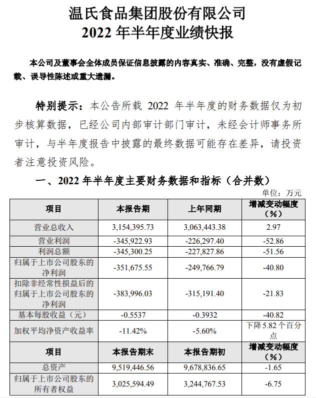 | 温氏股份(300498)8月4日披露业绩快报,上半年公司实现营业总收入为315.44亿元,净利润为亏损35.17亿元,上年同期亏损24.98亿元。报告期内,公司销售肉猪800.6万头,毛猪销售均价13.59元/公斤,同比下降41.74%,公司养猪业仍然处于较大亏损状态。 ![]() (文章来源:证券时报) (责任编辑:admin) |