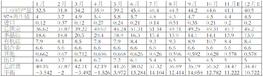 表为2024年工业硅月度供需平衡数据(单位:万吨) 综上所述,2024年及2025年工业硅仍将处于供应宽松局面,行业成本价格仍为主要走势参考,但阶段性供需错配以及政策面消息仍会带来新的市场机会。