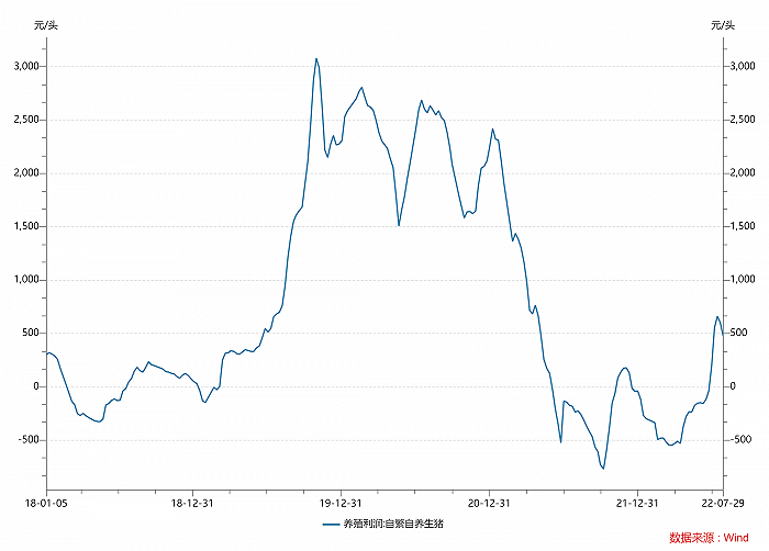 | 凛冬已过,温氏股份(300498.SZ)开始盈利了。 这家猪企今年上半年营业总收入为315.44亿元,利润总额亏损34.53亿元,归属于上市公司股东的净利润为亏损35.17亿元,同比下降40.80%。 表面看,温氏股份巨亏主要原因是养猪业务价格低位所导致的亏损。今年上半年公司实现销售肉猪 800.60万头(含毛猪和鲜品),毛猪销售均价13.59元/公斤,同比下降41.74%。 但值得注意的是,温氏股份第二季度实现盈利。公司一季度归属净利润亏损37.63亿元,由此测算二季度盈利2.46亿元。这也是公司自2021年第二季度以来,时隔一年首次实现季度盈利。 温氏股份的盈利也将打开新一轮生猪养殖周期行情。 上轮生猪养殖周期始于2018年。非洲猪瘟疫情重创生猪养殖产业,大量养殖场被迫退出导致行业产能大幅下滑。随着猪肉价格飞涨以及猪瘟得到有效控制,猪肉供给逐渐恢复。根据农业农村部的数据,2020年底全国生猪产能已恢复至常年水平的90%以上,整个行业已经历完一轮周期。截至今年7月29日,全国22个省市生猪平均价为29.16元/千克,相较2021年10月创出的3年低点18.17元/千克回升60.48%。 ![]() 数据来源:WIND,界面新闻研究部 寒冬已过,生猪养殖企业拐点确认,行业进入初春。自繁自养生猪利润年内首次为正,标志着整个行业拐点来临。7月1日自繁自养生猪利润为200.35元/头,实现今年以来第一次盈利。4个月前,行业亏损还为549.21元/头,由此导致一季度猪企的巨亏。截至7月29日,自繁自养生猪利润已上涨至479.3元/头,行业利润开始扩大。 ![]() 数据来源:WIND,界面新闻研究部 值得一提的是,自繁自养生猪利润为行业平均水平,对于诸如温氏股份这样的头部企业,由于在管理效率、技术育种等方面具有优势,利润时间到来更早,相对利润也更大。今年6月随着猪价回升,公司养猪业务已先于行业率先实现月度扭亏为盈。6月公司销售肉猪123.20万头(含毛猪和鲜品),环比下滑6.91%,同比增长21.86%;收入25.20亿元,环比增长0.72%,同比大增43.1%;最为关键的毛猪销售均价为17.10元/公斤,环比增长8.64%,同比增长20.42%。 禽肉方面,温氏股份继续保持稳定。上半年公司销售肉鸡4.88亿只(含毛鸡、鲜品和熟食),销售肉鸭2432.92万只(含毛鸭和鲜品)。其中鸡价总体平稳,毛鸡销售均价为13.88元/公斤,同比上升0.43%,毛鸭销售均价为12.97元/公斤,同比上升7.73%,公司养禽业务整体实现盈利,但因饲料原料价格连续上涨推高养殖成本,养鸡业毛利率同比下降。 随着猪价的稳定,温氏股份也开始“加仓”。2021年下半年受价格下滑影响,彼时公司主要工作为提升种猪质量、优化种群结构,能繁母猪总体数量维持在100至110万头之间。而截至今年6月底,公司能繁母猪已提升至接近120万头左右。此外根据公司规划,预计年底能繁母猪数量将增加至140万头左右,扩张意图明显。 与此同时,温氏股份表示由于近期包括鸡、猪、鸭等业务行情均有所好转,现金流持续变好,公司资金压力较小,将优先将资金用于增加种猪和肉猪存栏量,努力完成出栏规划。 另一家猪企唐人神(002567.SZ)已抢先一步进行扩张。这家公司正计划非公开发行股票,募集资金不超过11.98亿元,用于5个养殖项目建设(8.6亿元)和补充流动资金(3.38亿元)。本次定增公司控股股东拟认购1亿元至1.5亿元,由此也可以看出对于猪企未来发展的信心。 春江水暖鸭先知,随着生猪养殖行业盈利周期到来,各猪企扩张之路也一同打开。 相关报道半年亏损Q2盈利 温氏股份:下半年生猪出栏量目标1000万头 (文章来源:界面新闻) (责任编辑:admin) |