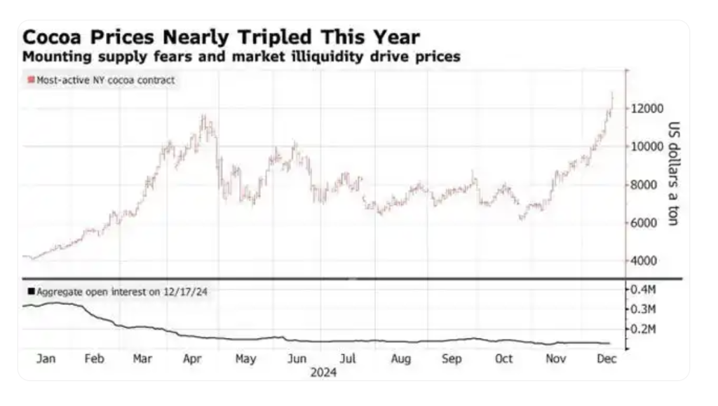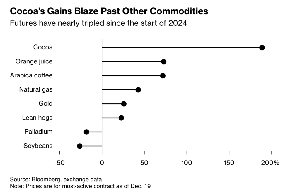大涨174%!可可期货成2024年表现最佳大宗商品 黄金年内创30余次新高