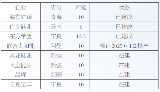 表为2025年多晶硅计划投产产能 终端装机需求增速放缓 2024年1—11月,中国新增光伏装机量206.3GW,同比增长25.8%,预计全年总装机将超过240GW。2024年1—2月中国装机量同比大增的主要原因在于部分2023年年底的项目延后并网,3月再度回归到淡季装机水平。2024年二季度新增装机量环比表现亮眼,主要是消纳红线下调所致;三季度受分布式入市政策及终端电站收益降低等因素影响,新增装机量比二季度小幅回落。展望2025年,煤价低迷拖累太阳能发电经济性、土地资源制约、弃光率、分布式入市政策等因素依旧限制中国新增光伏装机量,预计2025年中国新增光伏装机量同比增速在5%以内。 2024年海外市场表现分化,传统欧洲市场增速放缓,新兴市场诸如中东、印度开始发力。2022年、2023年欧洲能源价格大幅上涨催生光伏装机需求,2023年欧洲光伏装机量同比增速达到53%。欧洲太阳能协会Solar Power Europe的最新报告《EU Market Outlook for Solar Power 2024-2028》提到,2024年欧洲市场新增光伏装机量为65.5GW,同比增幅仅4%,增速显著放缓。欧洲市场光伏组件库存持续累积,截至12月,欧洲市场光伏组件库存已经超过50GW。美国清洁电力协会(ACP)发布了一份由S&P Global Commodity Insights编制的《太阳能市场监测》报告,报告预测2024年度美国大型地面光伏装机量将增加32GW,2024年美国新增光伏装机量可达42GW,较2023年增长32%。近年来,巴基斯坦光伏产业发展迅猛,2024年上半年从中国进口光伏太阳能组件接近13GW。巴基斯坦已经成为中国太阳能组件销售的第三大目的地。2024年印度光伏装机量激增,前三季度印度新增装机量达到17.4 GW,包括约13.2 GW的大型地面电站项目、3.2 GW的屋顶光伏项目以及1 GW的分布式离网光伏系统。 展望2025年,欧洲市场能源价格回落使一些补贴政策逐步取消,屋顶光伏项目发展速度显著放缓;电网拥堵和储能不足导致负电价和更高的弃光比例,集中式光伏项目增速亦显著放缓。总体来看,预计2025年欧洲市场新增光伏装机量同比持平,甚至有下降风险。但欧洲地缘局势仍存不确定性,若俄乌冲突加剧,再度推高欧洲能源价格,欧洲光伏市场需求也会高涨。2025年美国光伏市场存在较大的不确定性,一方面特朗普上台后对光伏行业的政策并不明朗,另一方面美国对中国和东南亚的关税和“双反”政策显著推高美国进口光伏组件的成本,降低光伏装机的积极性。此外,2024年美国光伏组件产能快速扩张,名义总产能达到53GW,基本能够覆盖美国本土的装机需求,2025年中国和东南亚对美国的光伏组件出口量承压。但美国目前并没有运营中的光伏电池产能,考虑到美国或对东南亚光伏产品加征关税,美国电池进口或转向印度和中东,预计2025年印度对中国硅片、电池的需求将保持高增速。巴基斯坦电力市场面临着发电能力不足、输电和配电网络陈旧老化、用电成本较高等问题,叠加2024年光伏组件价格下移进一步激发户用光伏装机积极性,预计2025年巴基斯坦光伏产品需求依旧旺盛。但从巴基斯坦光伏装机统计数据和光伏产品进口数据来看,两者之间差值超过20GW,需警惕巴基斯坦光伏产品隐性库存累积带来的风险。 综合来看,2025年全球新增光伏装机量同比增速或保持在5%~10%之间。海外光伏电池产能较少,中国多晶硅终端需求仍受全球光伏装机情况影响。美国对中国和东南亚的光伏产品加征关税在一定程度上利好海外多晶硅产能,联合太阳能10万吨多晶硅产能投产后,欧洲、美国对中国的多晶硅需求或被部分挤占。在不考虑硅片薄片化的情况下,预计2025年中国多晶硅需求增速为5%,对应需求量为145万~150万吨。 关注供需错配机会和“行业自律”情况 从多晶硅产能和全球装机的角度分析,2025年多晶硅供需宽松的格局延续,投资者需关注阶段性的供需错配机会和多晶硅生产成本变化。 2025年多晶硅供应高峰可能出现在三季度 2024年三季度以来,受利润压力和库存影响,多晶硅企业停产、降负生产的情况增加。2024年多晶硅产量在176万吨左右,同比增加19%,产量增速远小于产能增速。2024年12月24日,通威股份发布公告,根据公司总体生产经营计划进行技改及检修工作,阶段性有序减产控产,后续具体复产安排将根据项目地电力价格变化以及市场行情统筹规划。同日,大全能源发布公告,将逐步启动对新疆及内蒙古生产基地高纯多晶硅产线的阶段性检修工作,对部分产线进行有序减产控产。2024年12月中国多晶硅产量环比降低20%,至9.8万吨。协鑫科技相关工作人员称,公司将同期进入减产检修工作,因而2025年1月多晶硅产量将保持在10万吨以下。 多晶硅产能停启时间成本和资金成本高昂,多晶硅供应弹性相对较小。当前多晶硅现货价格在大部分产能现金成本线附近,叠加超过30万吨的工厂库存,短期多晶硅企业无复产动力。西北低气温、西南枯水期带来高电价,2025年一季度多晶硅企业大规模复产概率较低。多晶硅期货交割标准规定生产日期三个月外的货源不允许入库,且二季度西南电价下调,预计2025年3月后多晶硅或出现较大规模复产。对降负荷生产的模块化多晶硅产能,从开始提产至满负荷生产的时间周期为1至2个月,停产的多晶硅产能重启至满负荷生产的时间周期为2至3个月。此外,多晶硅期货上市后,多晶硅企业有套期保值工具,参考工业硅2024年5月份上涨引起的下半年供应增加,2025年多晶硅供应高峰或出现在三季度。四季