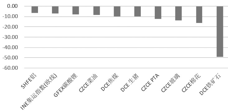 图为商品期货资金流出前十名(亿元)