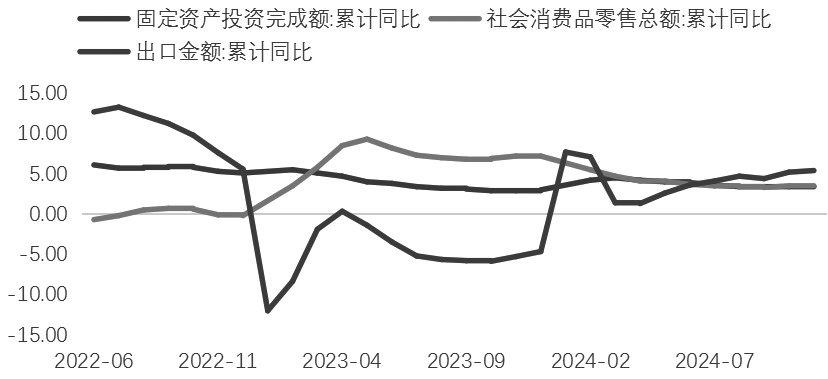 2025年伊始,受外部不确定性增加影响,A股市场延续震荡回落走势,上证指数自3350点附近回调至3205.78点。同时,市场风格也略有分化,虽然大盘蓝筹股及中小盘个股均有所下挫,但大盘蓝筹股较中小盘股相对抗跌,因此开年IH及IF主力合约走势略强于IC及IM。此时距离春节已不足1个月,节前A股走势将如何演绎?经过观察分析,笔者认为,与去年相比,影响A股市场走势的主要因素有了一些新变化。 稳地产效果有所提升 从最新的经济数据看,在财政及货币政策双双发力的情况下,去年11月国内“三驾马车”继续保持平稳增长,其中出口累计同比增长5.4%,较前值增长0.2个百分点,社会消费品零售总额累计同比与前值持平,投资累计同比增速则较前值下降0.1个百分点。 2024年我国出口呈现前低后高的局面,2025年一季度有望维持良好开局,后续可能会受到海外贸易保护主义抬头因素影响而出现波动。国内需求方面,各地陆续开展的家电家具以旧换新政策推动消费快速从底部回升,同时带动家电产量明显增加,特别是空调产量去年11月同比增长27%,为近年来高点。进入2025年,以旧换新政策延续,并扩大补贴种类范围,预计将支撑国内消费继续温和回升。国内投资方面,在各地陆续取消限购以及房贷利率不断调低的背景下,房地产需求明显改善,从去年10月开始全国商品房及二手房成交量均大幅回升,房企拿地及融资情况逐步改善,但商品房新开工及施工数据仍然偏弱,去年11月累计同比降幅较前值进一步扩大。由此可知,地产消费端到投资端传导尚需时日。基建及制造业投资保持较快增长,特别是基建投资,2024年下半年地方政府专项债发行速度明显加快,同时财政及政府性基金支出同比大幅提升,推动基建投资回升,未来在政策不断加码情况下,2025年基建投资增速有望再上新台阶。