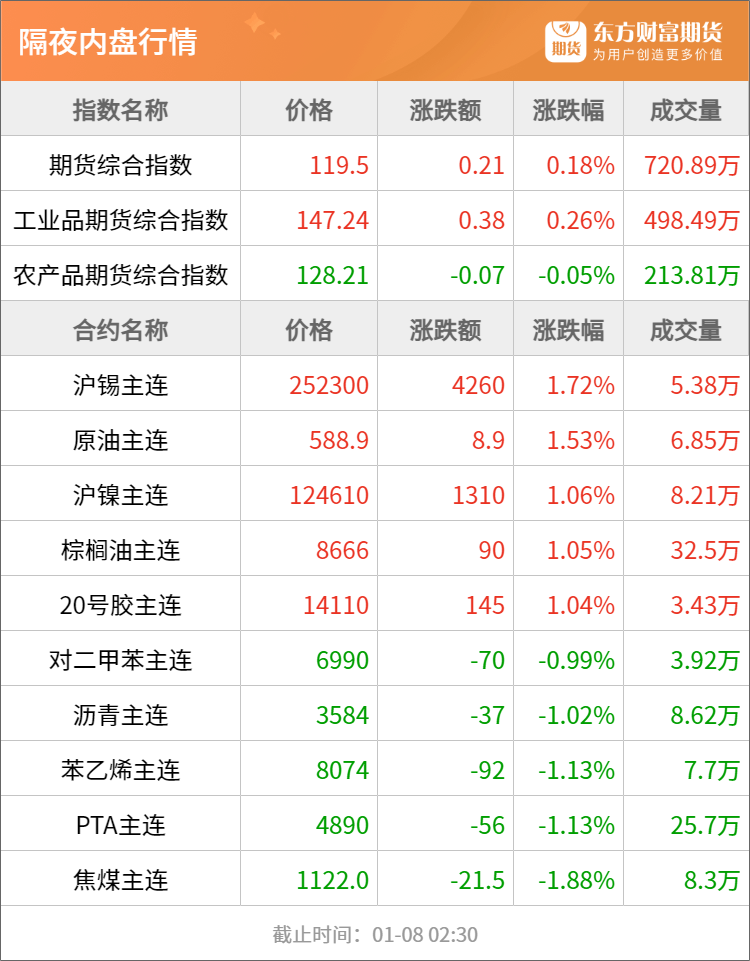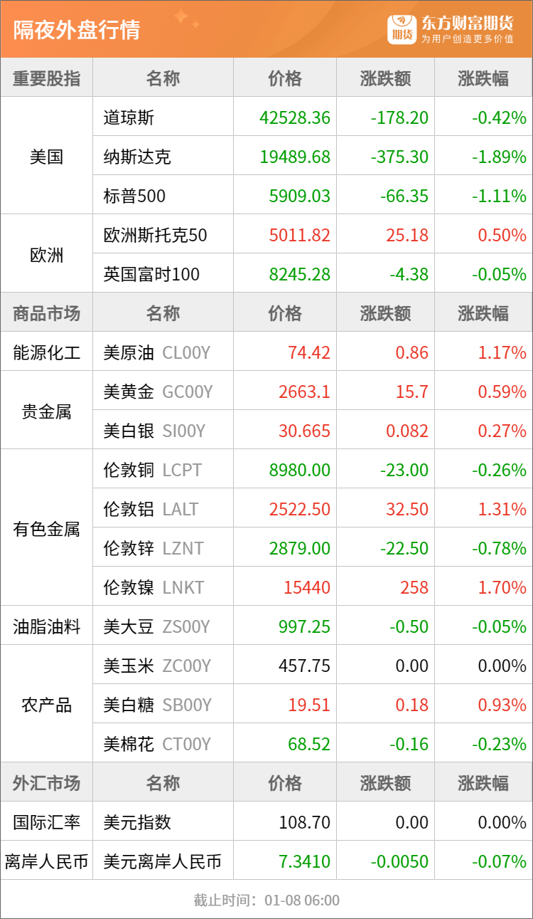 东方财富期货早餐 1月8日 周三